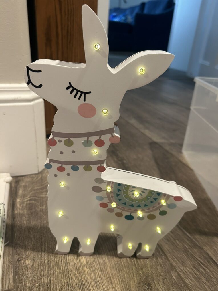 VenmoMy daughter has grown out of her llama room. We have 2 strands of pom poms, a llama that is battery operated that lights up, a 5x7 llama frame, a 13”x17” alpaca picture, and a 12”x16” llama picture.