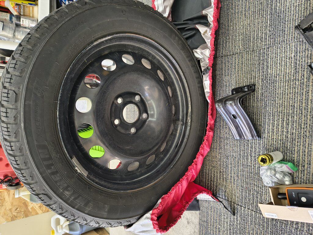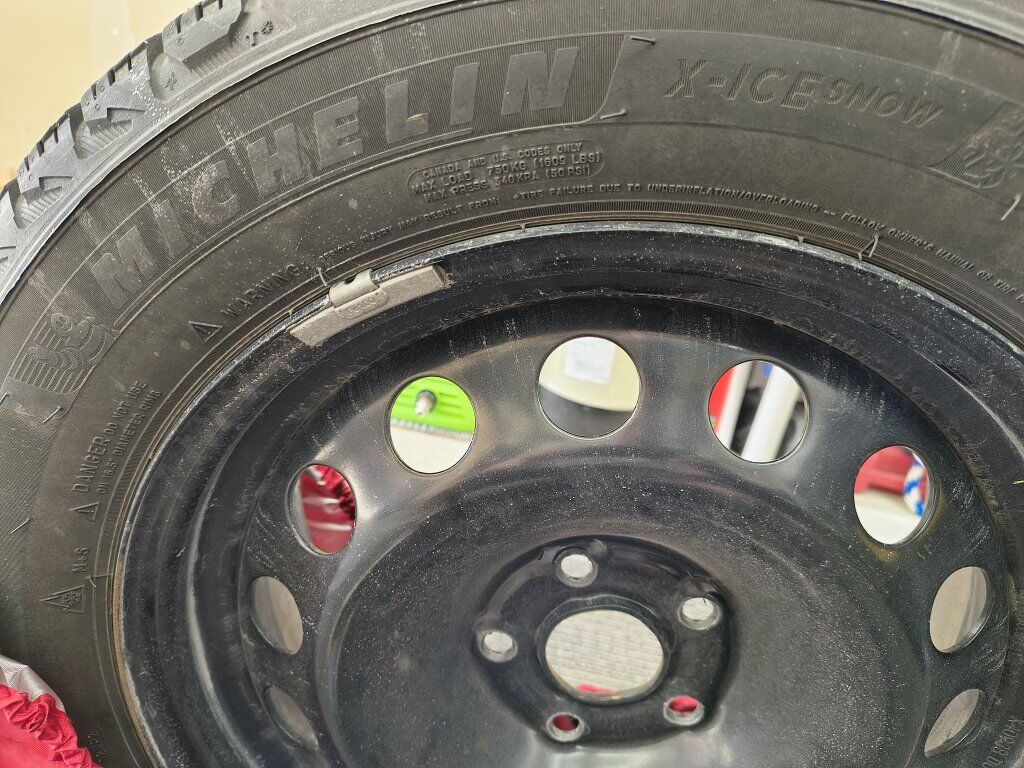 Set of 4 Michelin X-Ice Snow tires mounted on 16 inch steel wheels with lug nuts, TPMS sensors, TPMS programmer, lug socket, scissor jack/wheel chocks, and tire/wheel storage covers. Tires are off of my 2023 Chevy Bolt EUV, used for one winter season. tires are worn evenly and at about 8/32nds. Wheels are 16x6.5 5-105 bolt pattern. TPMS are 433MHZ sensors. Asking $700 for everything.