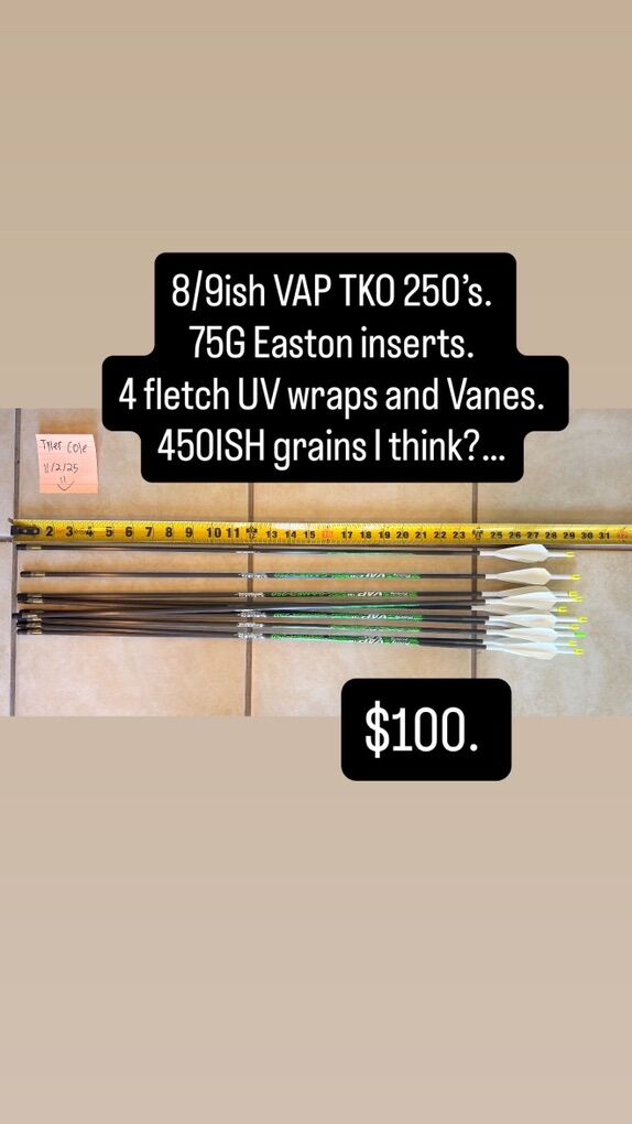 Venmol've got a few arrow sets I'm gunna drop here for a good deal on everything. Most are inserted and stuff but some have a couple stragglers. Etc. but I'll hook ya up. Most of the smaller groups of arrows at OBO. So throw out a number on $$$ and I'll probably take it TBH. But feel free to share why I've got for sale with anybody who might need them. All setups are FCFS. Whoever Venmo's me first we'll ship em out etc. Thanks guys. @TC-CUSTOMZ-ARCHERY on Instagram.
