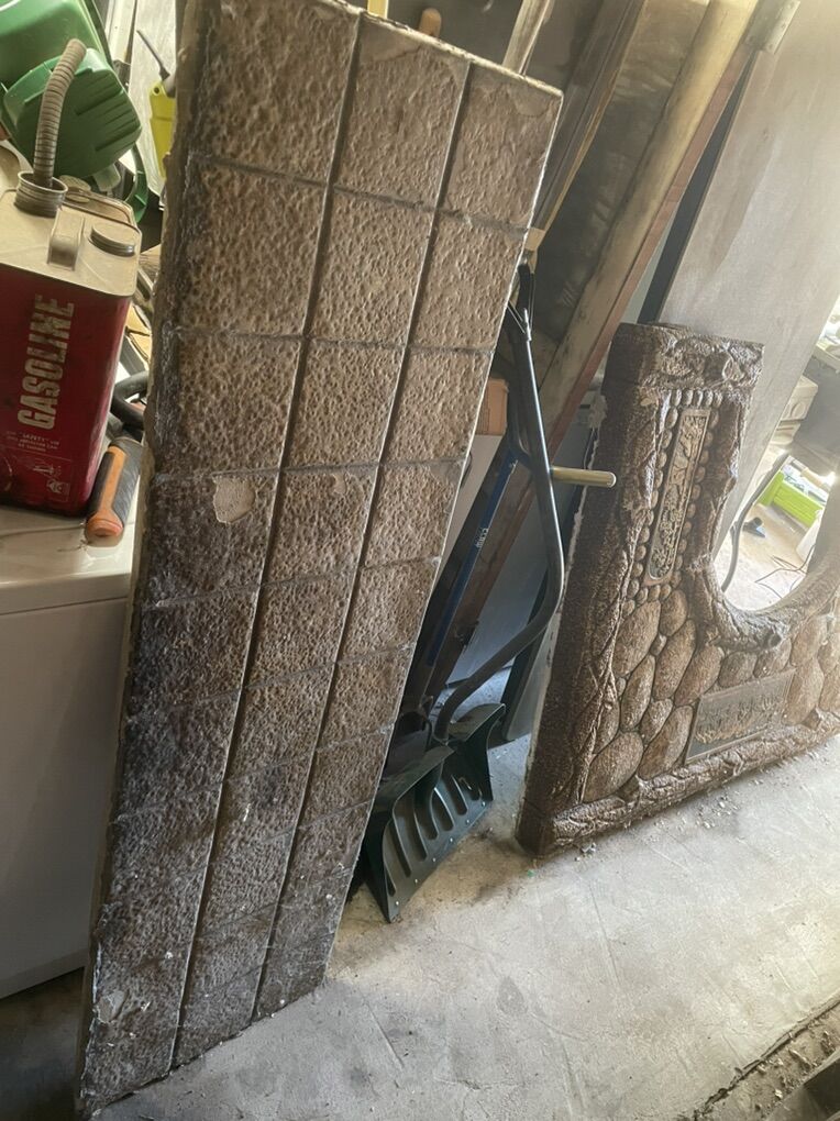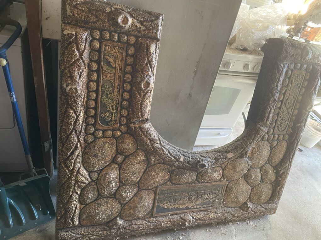 VenmoVery unique one-of-a-kind antique architectural salvage fire place front mantel surround. Locally made formed concrete with relief image of Timponogos and other local scenes. Includes matching hearth stone, in fair condition, needs some cosmetic touch up. Appears to be from the late 1920s based on the home it was salvaged from. This would be amazing in a cottage, cabin, or other unique structure wanting to add some historic charm back into. Measures 60”W x 48”Hx4”D. Hearth stone measures 60”W x 18.5”D x 1”H.