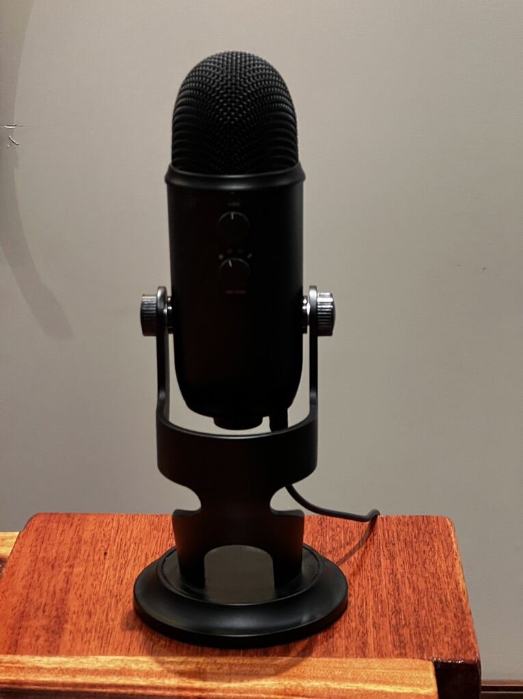 Selling a Blue Yeti Microphone in Black. Great for video calls, pod casts and whenever high quality audio is needed.