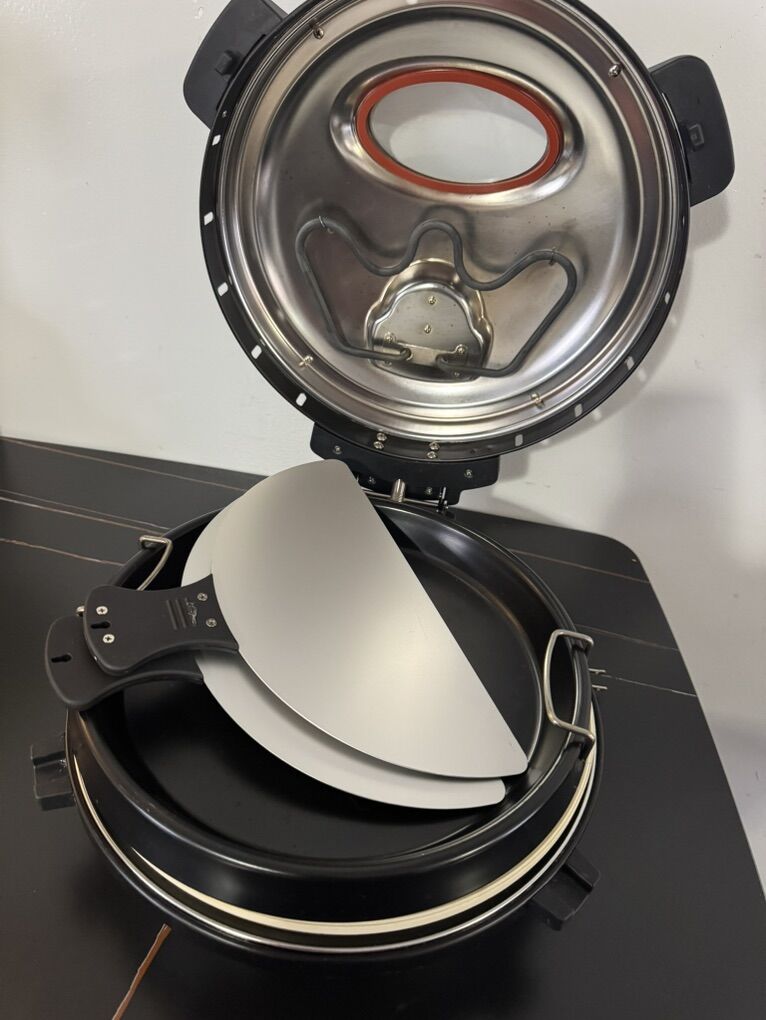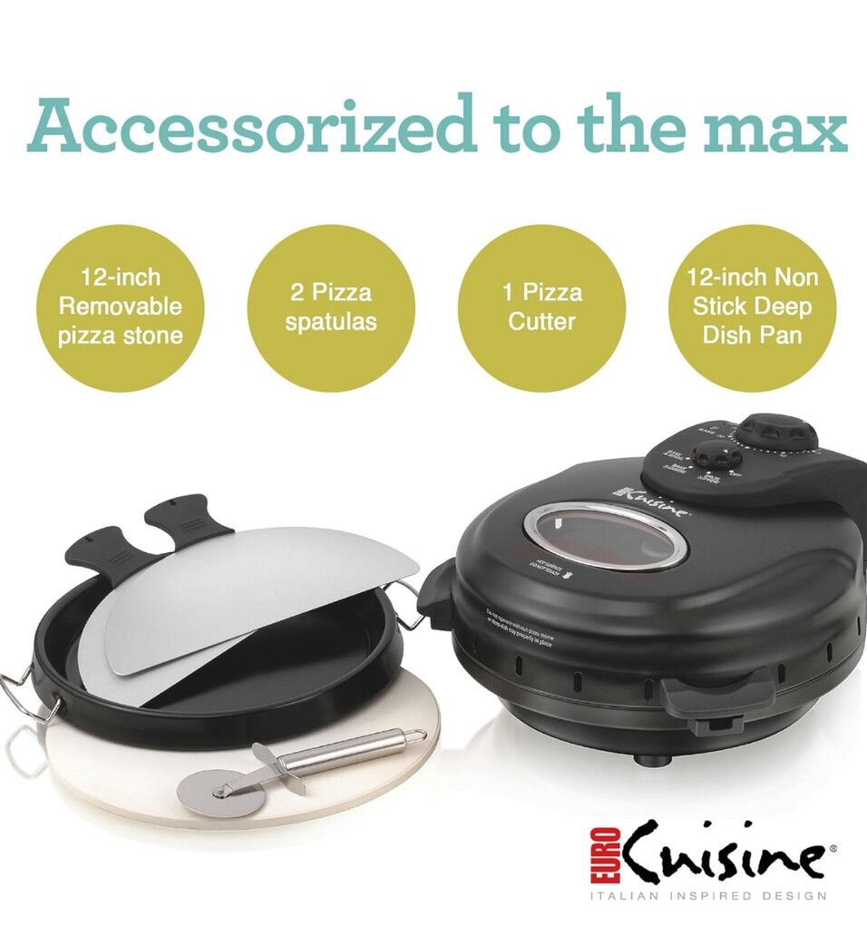 VenmoEuro Cuisine PM600 Rotating Pizza Maker with 12 Inch Non-stick Ceramic Stone & Baking Pan, Indoor Co