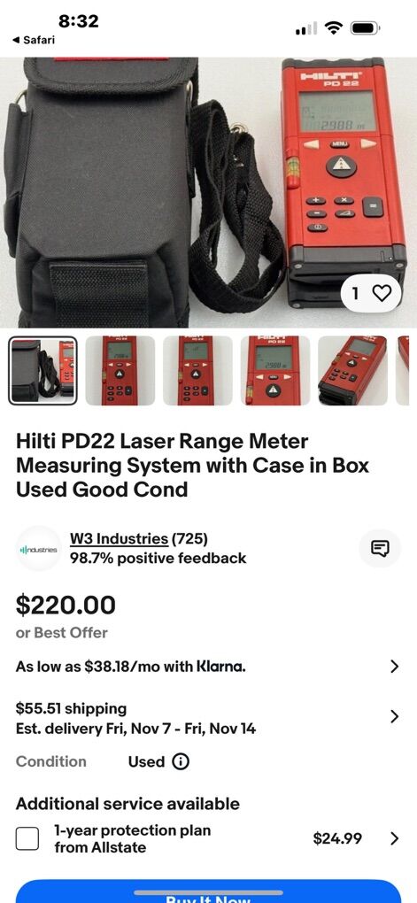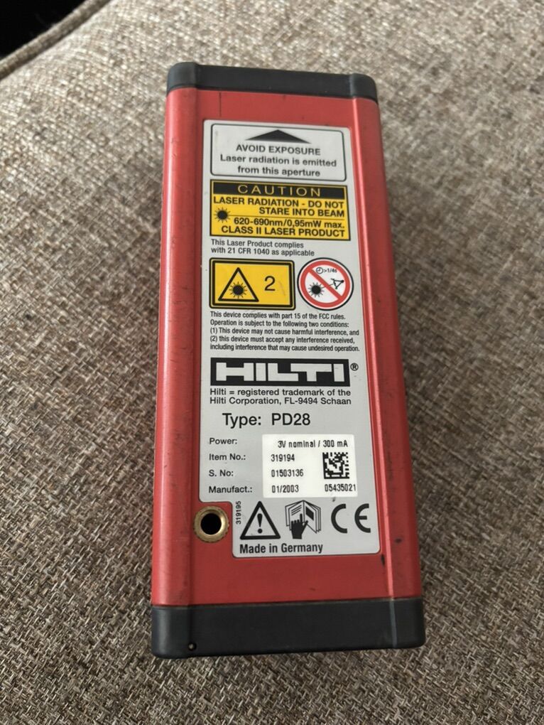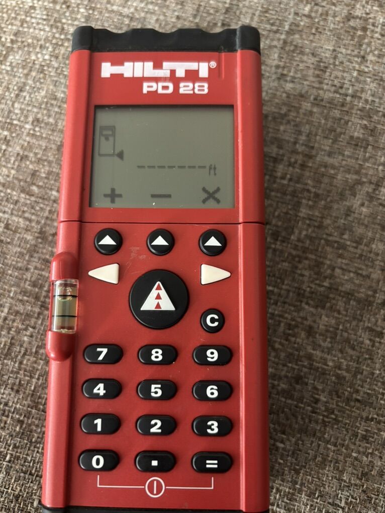 Nice Hilti pd28 laser measuring tool! Looks and works good! These laser measures is currently for sale at on eBay for 200.00-220.00 as shown in photos, do t pay retail prices, call Dustin instead at 801-205-3404, I need it gone!