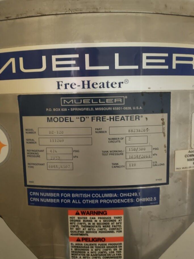Save money and conserve energy for your facility with Mueller Fre-heater. This heat recovery system captures wasted heat from refrigeration units and uses it to heat water.