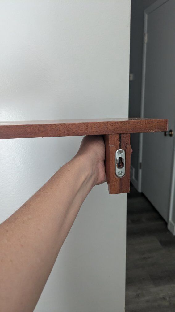 Hanging Shelf. Pictures show the measurements. Part of the price tag is on the bottom. Text if interested. Asking $1.00