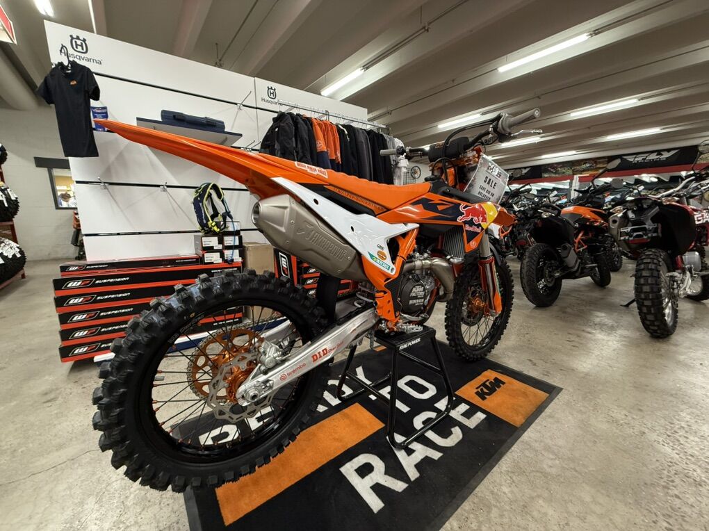KTM lives and breathes a READY TO RACE mantra, and the FACTORY EDITIONS are special, limited-run models that erase the last few spec variances between what is 'stock' and what is 'factory'. It's then up to the rider how much they want to make the difference: how fast are you and how much do you want it? For 2024 the KTM 450 SX-F FACTORY EDITION inherits the basis of the 2024 peerless KTM SX-F motocross racers and then, thanks to a list of KTM POWERPARTS additions, gets as close to the Pros as its possible to be. This specific bike comes with a fresh chassis, and a brand-new Connectivity Unit that allows more interaction and setup possibilities than ever before. The 2024 KTM 450 SX-F FACTORY EDITION has been crafted by racers for the ultimate racecraft. Try to catch it. 2024 FACTORY EDITION highlights: