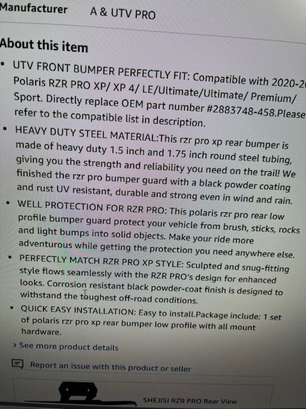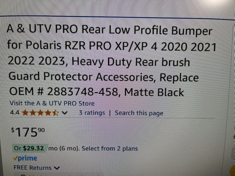 VenmoNew Polaris Rzr Pro XP/ XP 4 2020-2023 Rear Bumper