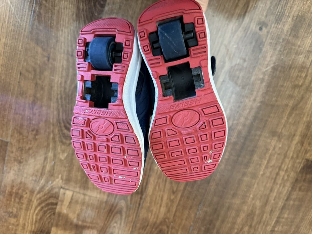 Kids Heely’s shoes youth size 12c red white and blue no covers on bottom.