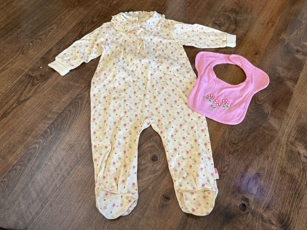 Vintage Gymboree baby girl set size infant 6-12 months yellow with pink flowers