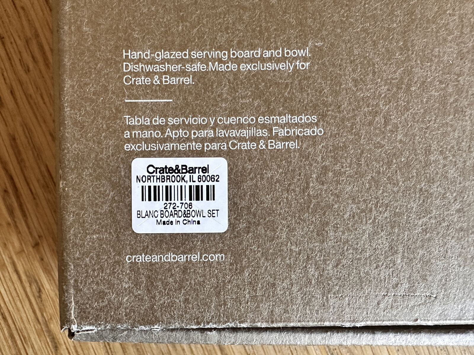 Brand New - Crate and Barrel Serving Board and Bowl set. Still in factory packaging.