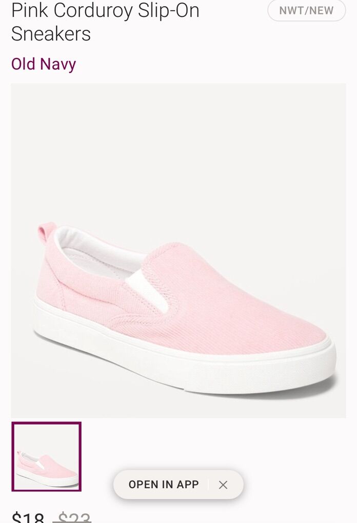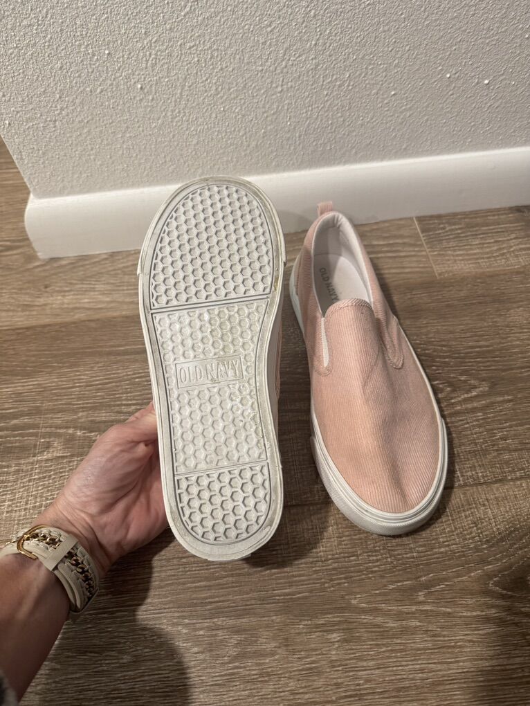 VenmoPink corduroy slip on shoes, only worn a few times, like new. The sizing on the tag says 5 or 24, which is essentially the equivalent to “US size 7.5, or a US youth size 5”. Old Navy brand.