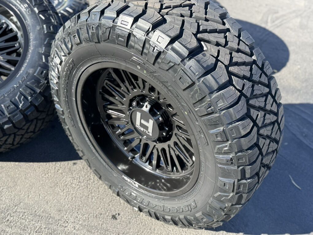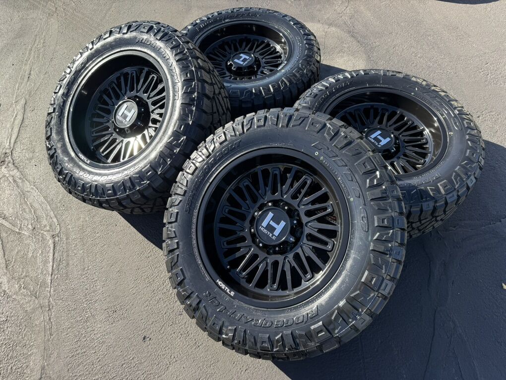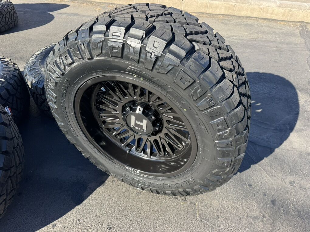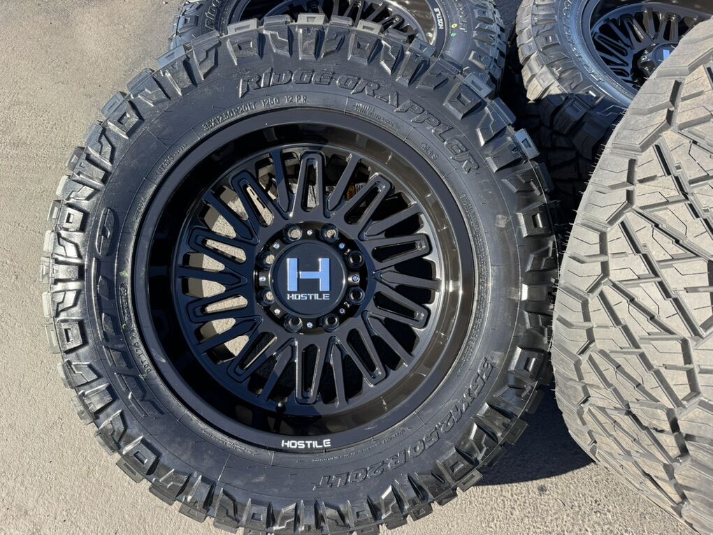 ApplePayBrand new package on special! 35x12.50r20 Nitto Ridge Grappler load F 12 ply Mounted and balanced on a brand new style for 2025, Hostile Rampage H143 Gloss black 20x10 -19et offset. 8x180 bolt pattern, these fit 2011 and newer chevy silverado and gmc sierra duramax trucks. HUGE Savings. Call or txt 435-760-1194