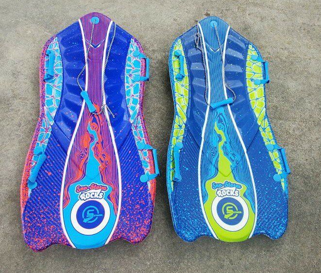The Sno-Storm Premium foam snow sled was designed and tested in the USA for everything use from snow play to riders wanting to thrill seek a speed run down a hill. Dense foam layering on a superior contoured molded foam with slick bottom. Tow rope and handles included for easy pulling or gripping to sled while riding. Foam construction holds integrity in cold temperatures and does not shatter as plastic competitor sleds. Text please! -Contoured and engineered for Snow Fun - The Premium snow sled features a scooped deck that allows improved steering vs. hard plastic sleds or flat foam sleds. The rails are slightly raised for easy grip with gloves and deck grooves improve grip to the sled. Ride sitting or laying down. Perfect sized sled for one adult or youth. Smaller youths can fit up to two per sled with the four handle design and generous width. -Channel Contour Bottom Slick - Each snow sled features an exclusive contoured channel bottom for directional drive and speed as well as providing stiffness to maintain board shape. -Easy to Transport - The snow sled length is 50in Length x 24in Width and 2.45lbs. Lightweight and easy to transport in car or carry up a hill. Strong tow rope and top loading tow plug can pull along flat trails.