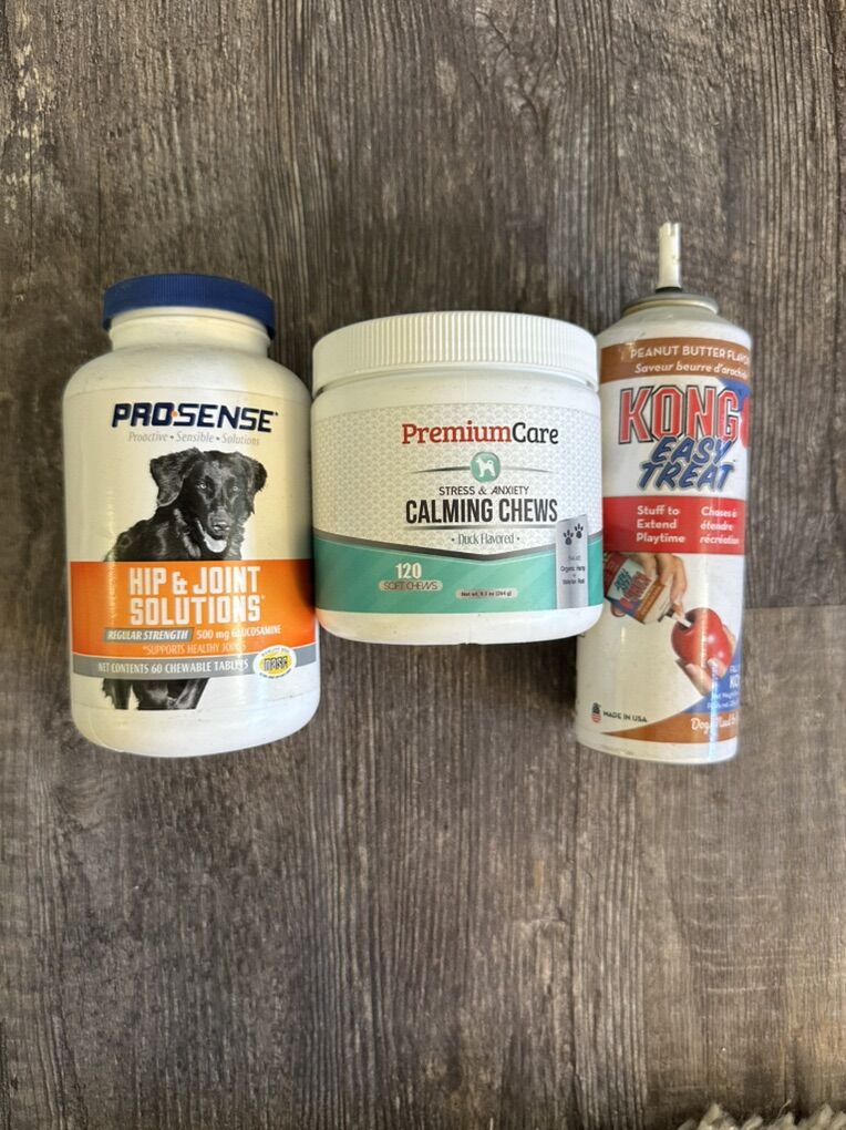 ApplePayI hope you can find joy with this bundle. Kennel , Kennel pillow, Dog bed, 1-Bark collar, 2 leashes, 2 sweatshirts, Tooth paste & brand new finger brushes still in box, Brushes, Brand new Toys, Electric Water fountain, Cone of shame, 2 Nail clippers, Kong snacks & 2 brand new Kong pink & green toys, Kong fast treat spray, Hip & joint pills, & Calming chews