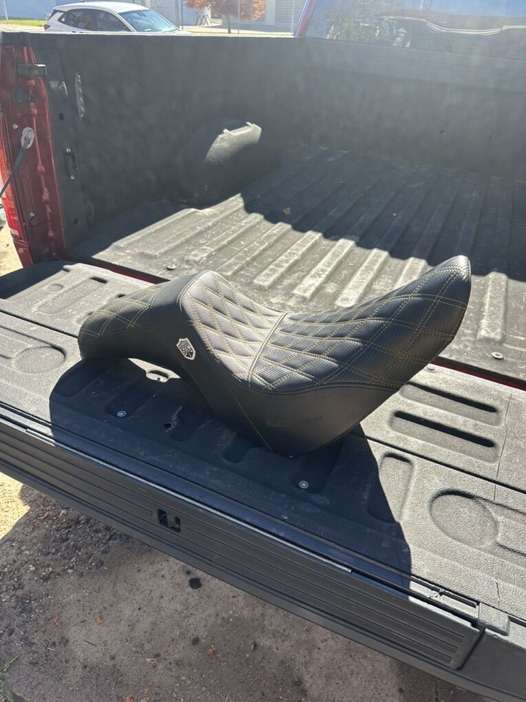 Selling my sdc saddlemen seat, going a different route with the seat that’s why I’m selling. Black with yellow stitching. If listing is still up it’s still available.