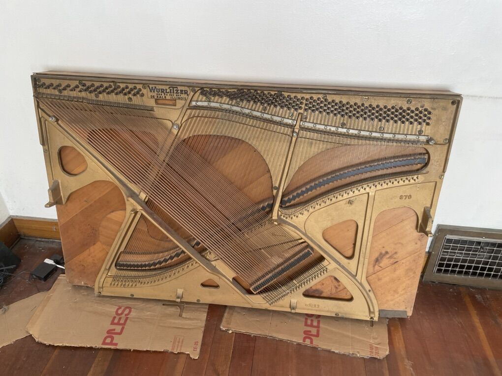 VenmoThis is an antique piano board, it makes very interesting and unique sounds. Could be a really interesting wall installation or experimental musical instrument. Solid cast iron board with two small wheels and solid rear handles for ease of transport. Come test it out, bring a truck and a friend. Measures 57”L x 35”H x 5”D.
