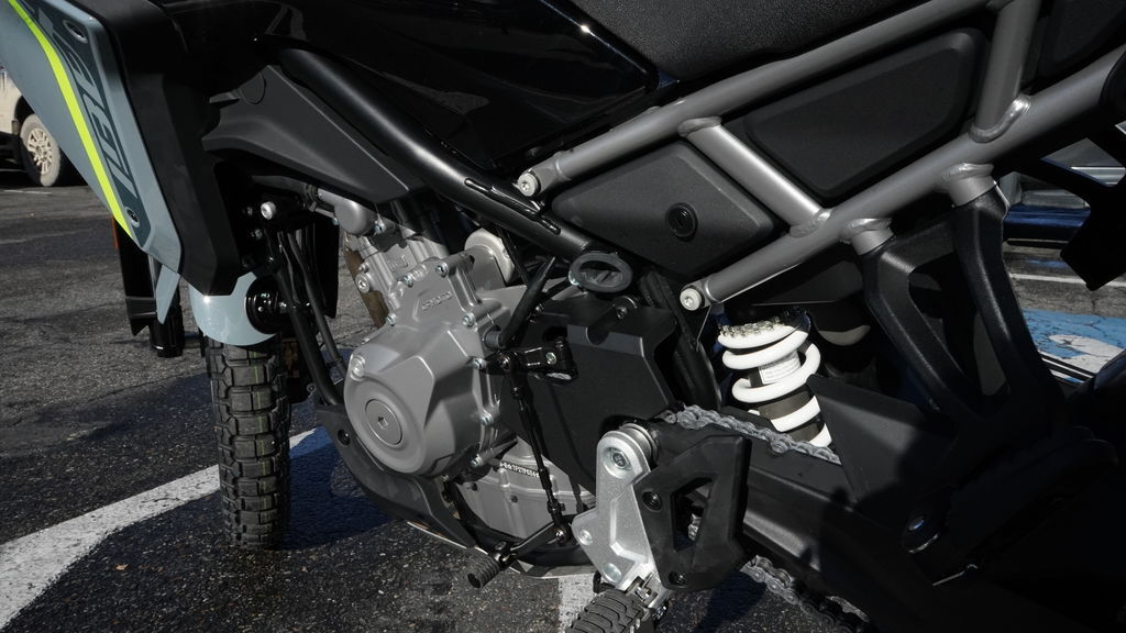 Purpose-Built ADV Chassis- A high-tensile steel frame with a long swingarm delivers stability, feel, and traction across changing terrain. The reinforced rear subframe is built to carry luggage and load. Ground clearance and centered weight keep the ride balanced and composed when the trail turns technical.