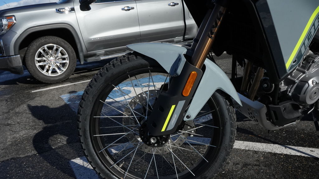 J.Juan Brakes – 320mm Front / 240mm Rear with Switchable ABS- Serious stopping power with one-touch ABS on/off switch. J.Juan brakes offer high-end feel and performance, while the ability to switch off ABS at the rear lets you lock up when you need to—like in deep sand or dirt.