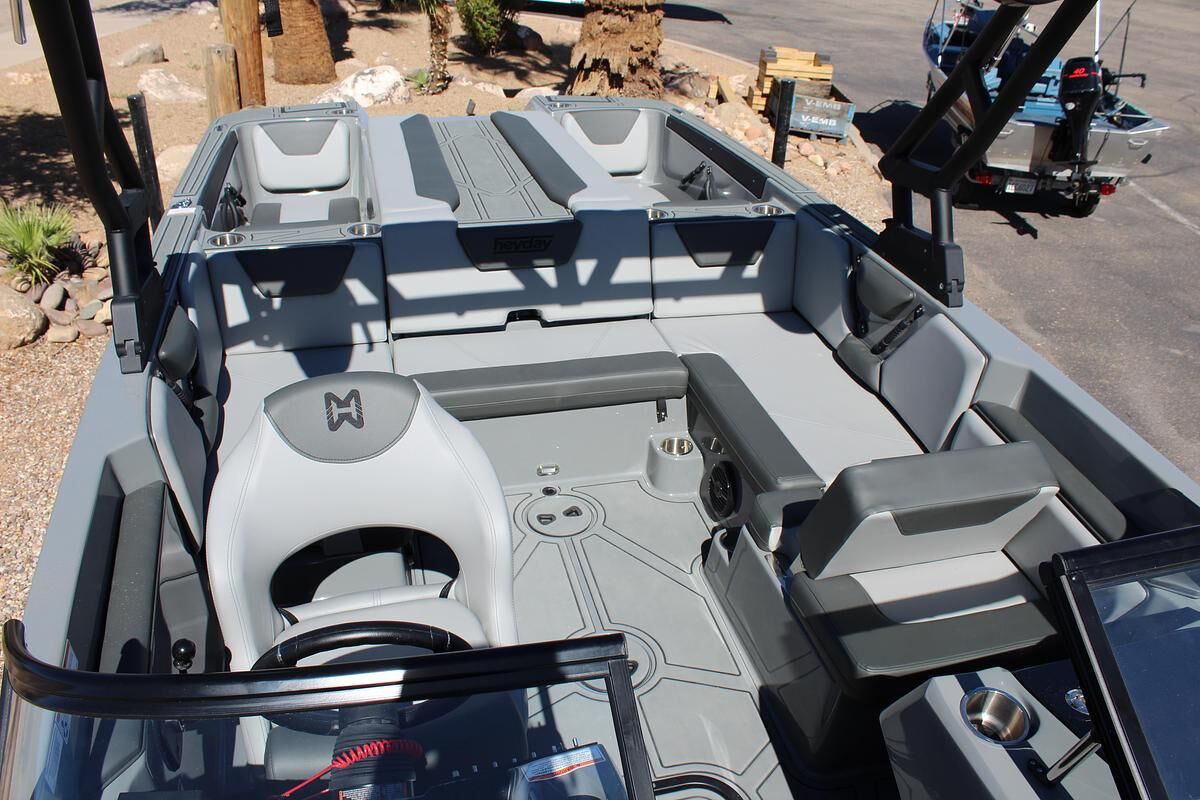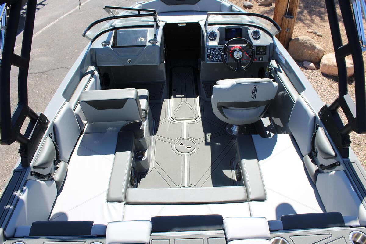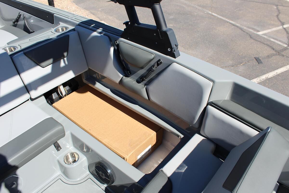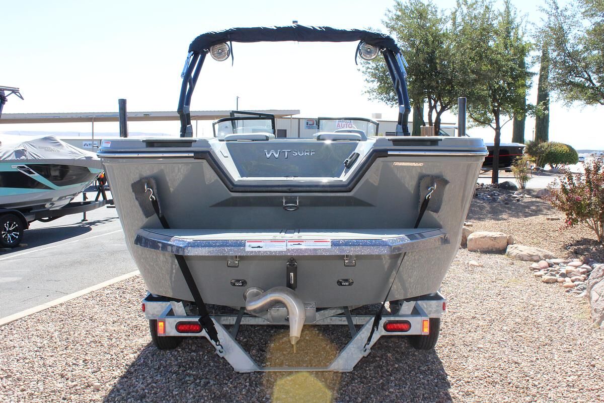 The new WTSurf offers a sleek profile, spacious layout, and more ballast than ever before. A full windshield and deep gunnels offer great protection from the elements and double-stitched upholstery keeps passengers comfortable. This model is built for socializing with removable backrests, flexible seating and ample space for gathering in the bow, cockpit, and stern. Between the stern’s ‘hot tub’ seats, a walkthrough provides easy access to the swim platform.