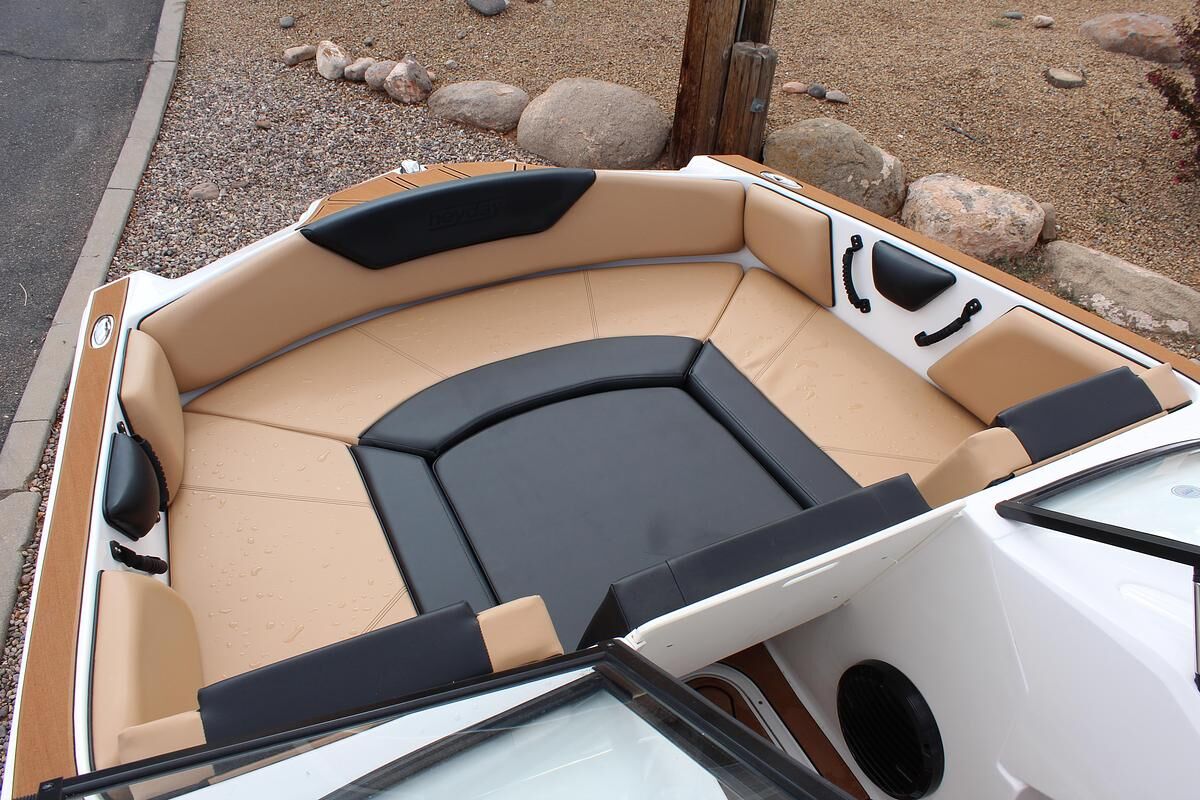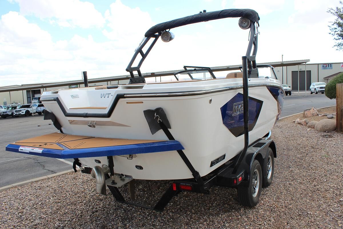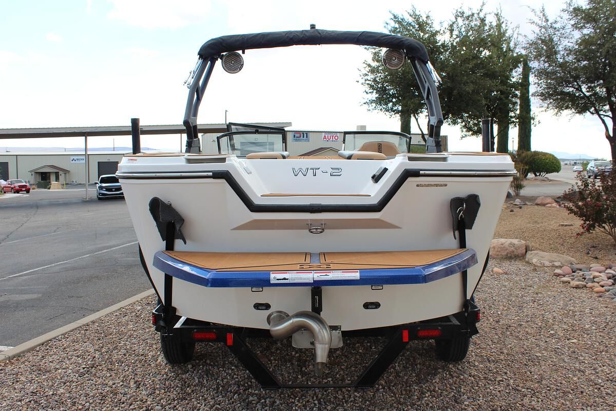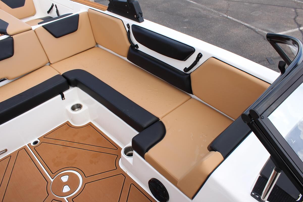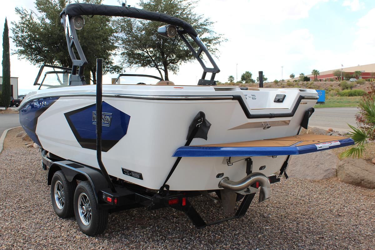 The WT-2DC offers a dual console layout with full windshield and wraparound cockpit seating. This model features a walkthrough to the swim platform with a transom step for getting ready between rides. There’s plenty of storage thanks to a spacious ski locker and under seat base storage. And of course, it has Heyday’s signature ‘Heyday Hangout Zone’ seats that get passengers closer to the action and conceal even more storage below
