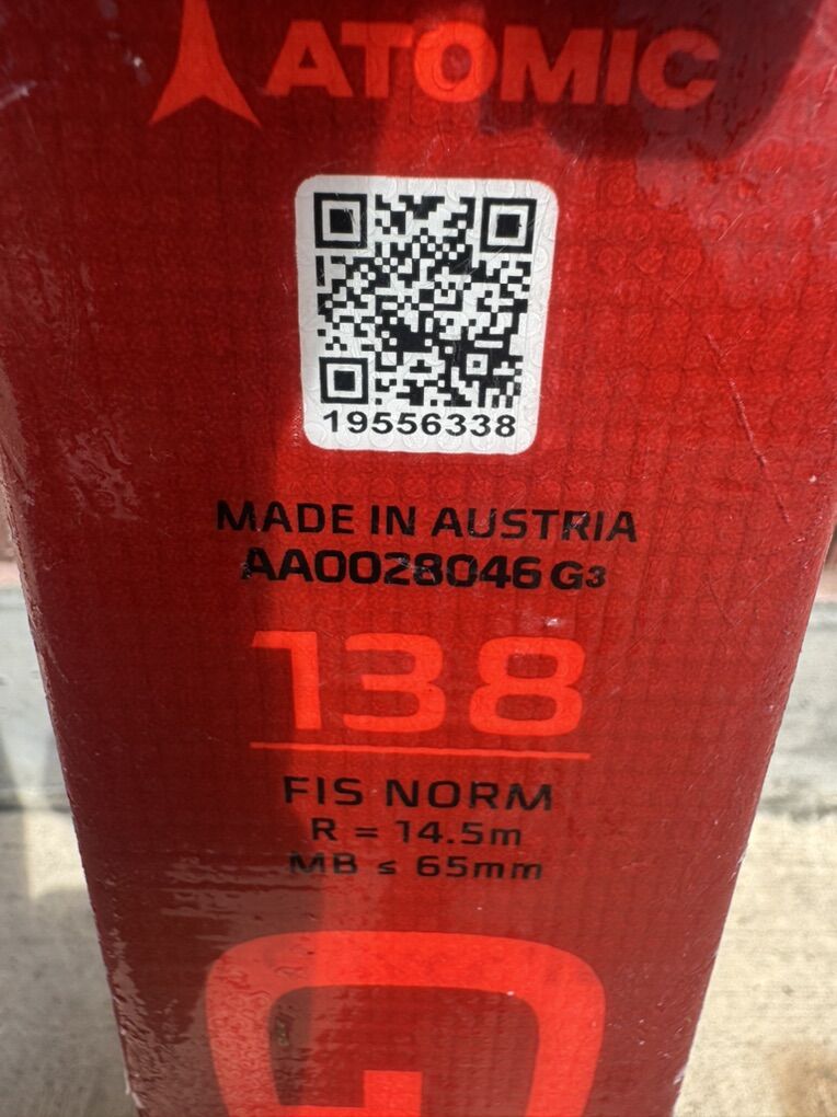 Atomic Redsters FIS Race Ski size 138. These were race skis - only worn on race day a few times( had rock skis for training). Great shape. Needs bindings. Good size for U10-12.