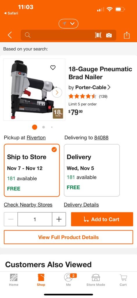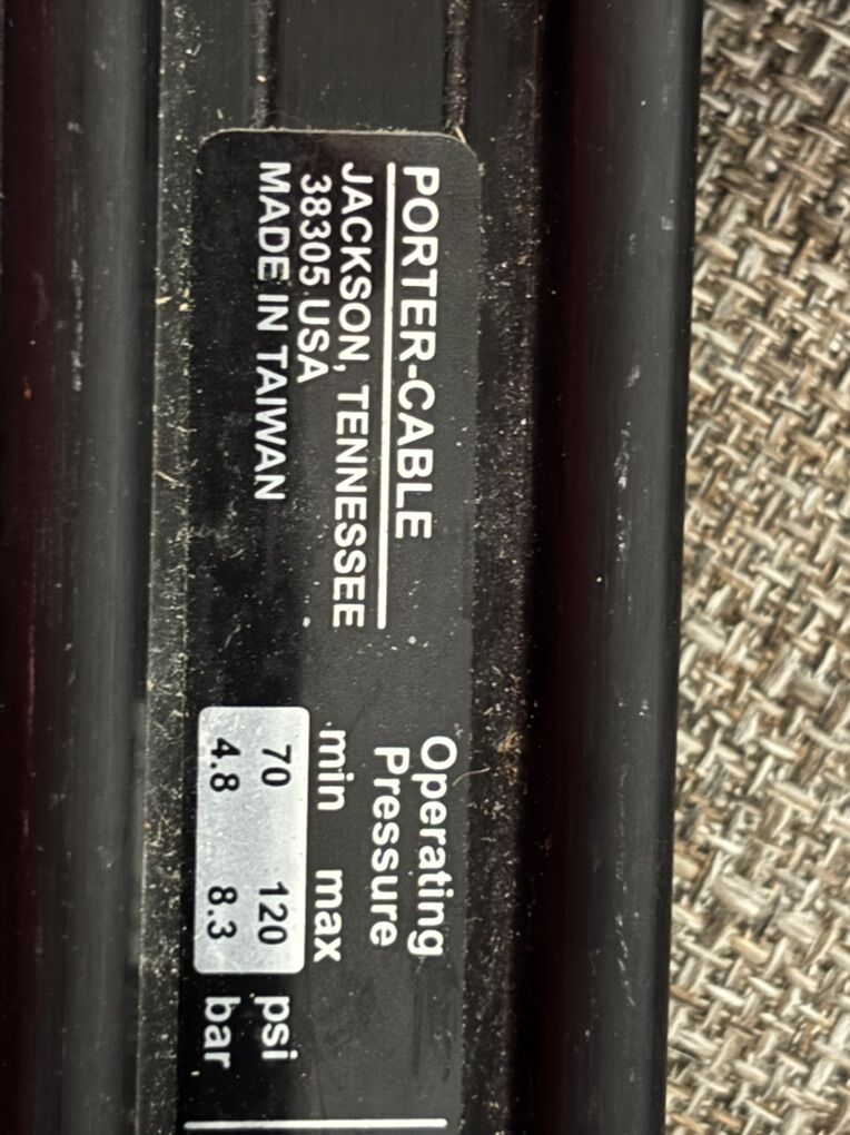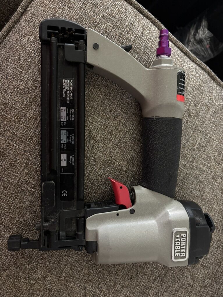 Nice Porter cable pneumatic air nailer !! Looks and works good! This exact nailer iis currently 79.99 at the depot now! as shown in photos! Don’t pay retail prices, call Dustin instead at 801-205-3404, I need it gone!