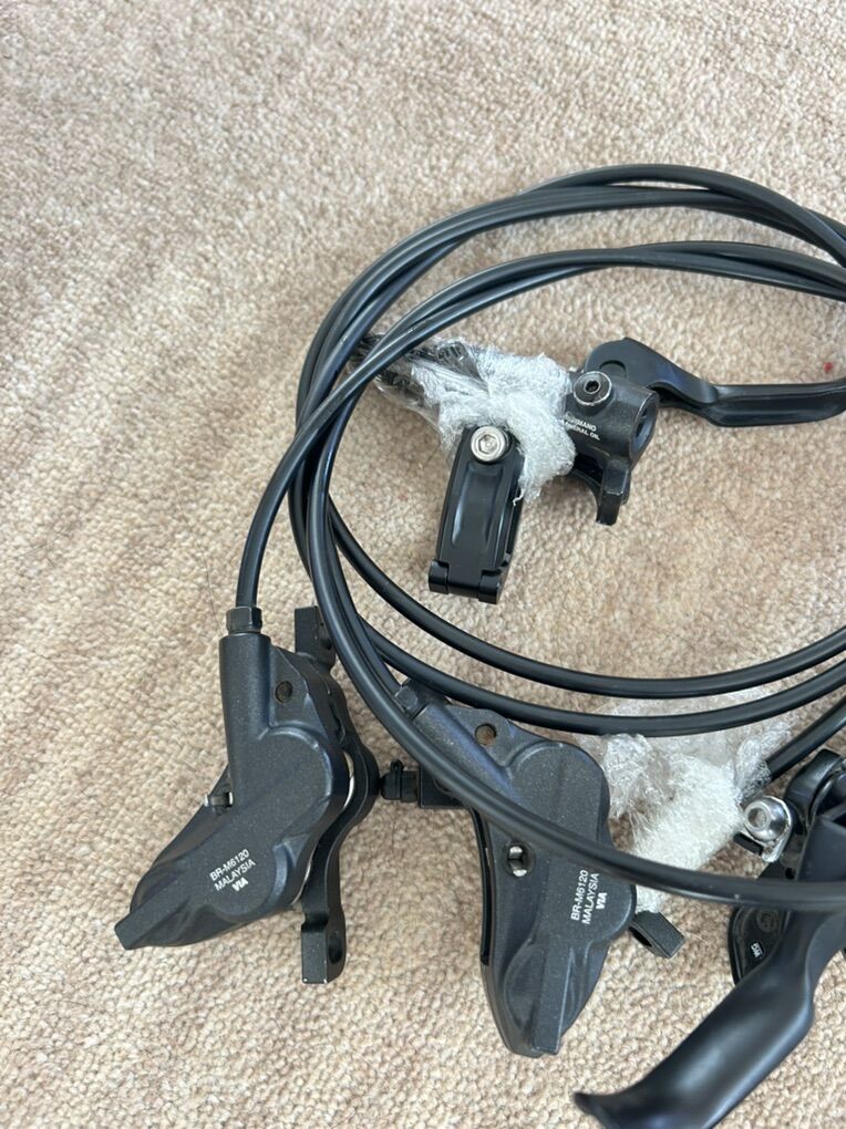 VenmoNearly new four piston br-m6120 brakes. Take-offs from Orbea Wild 203 galfer rotors and bolts included Left side includes dropper lever