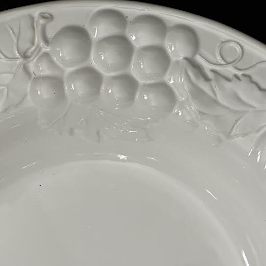 VenmoStoneLite round 15” white platter. Wide 3” border embossed with pear and grape design falling into the deep center bowl. Measures 15” round x 2-3/4” deep. Weight 4.2 lbs. Excellent like new condition. No chips, crazing or cracks.