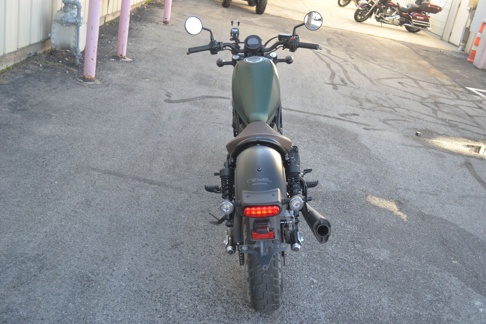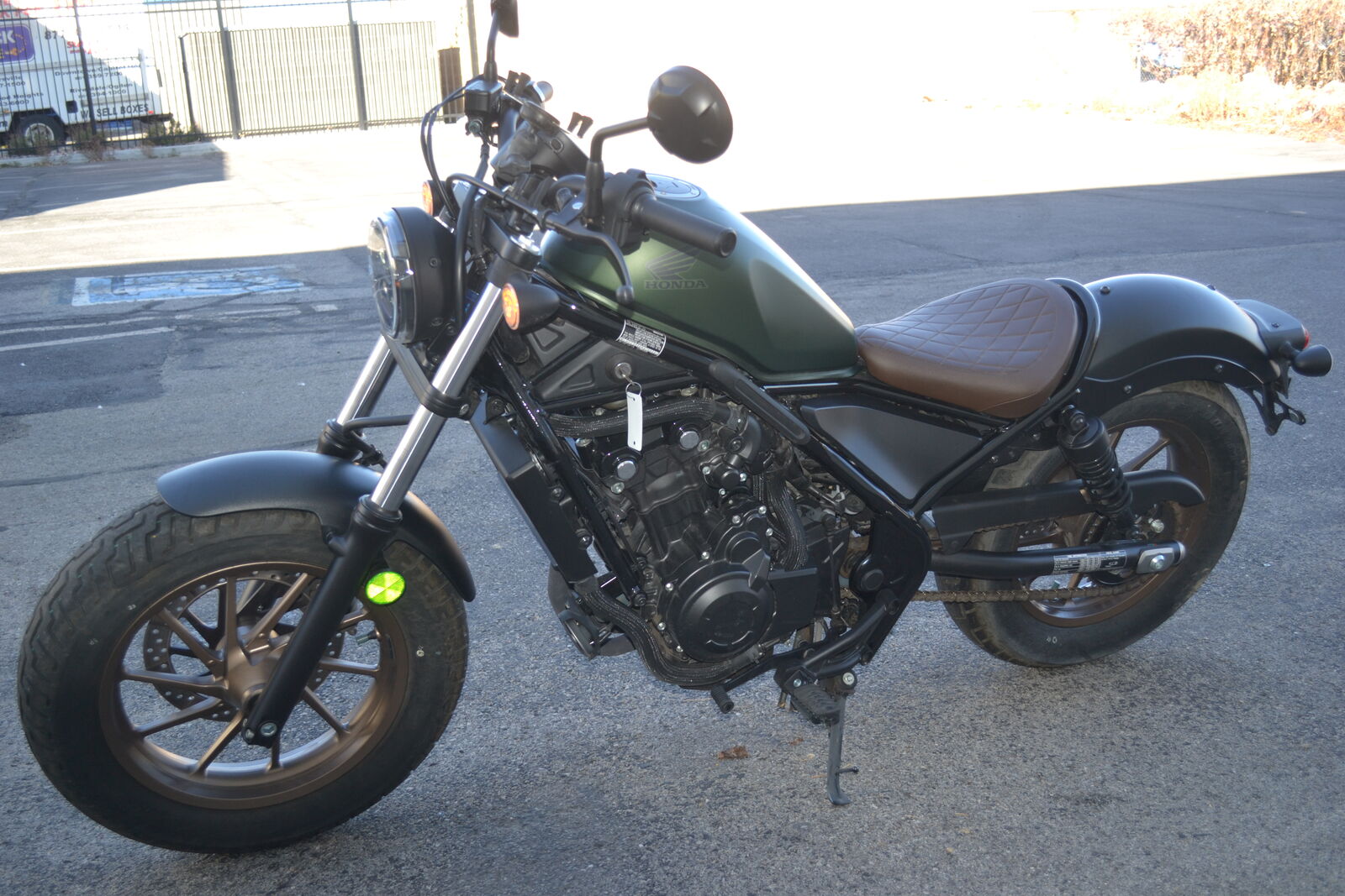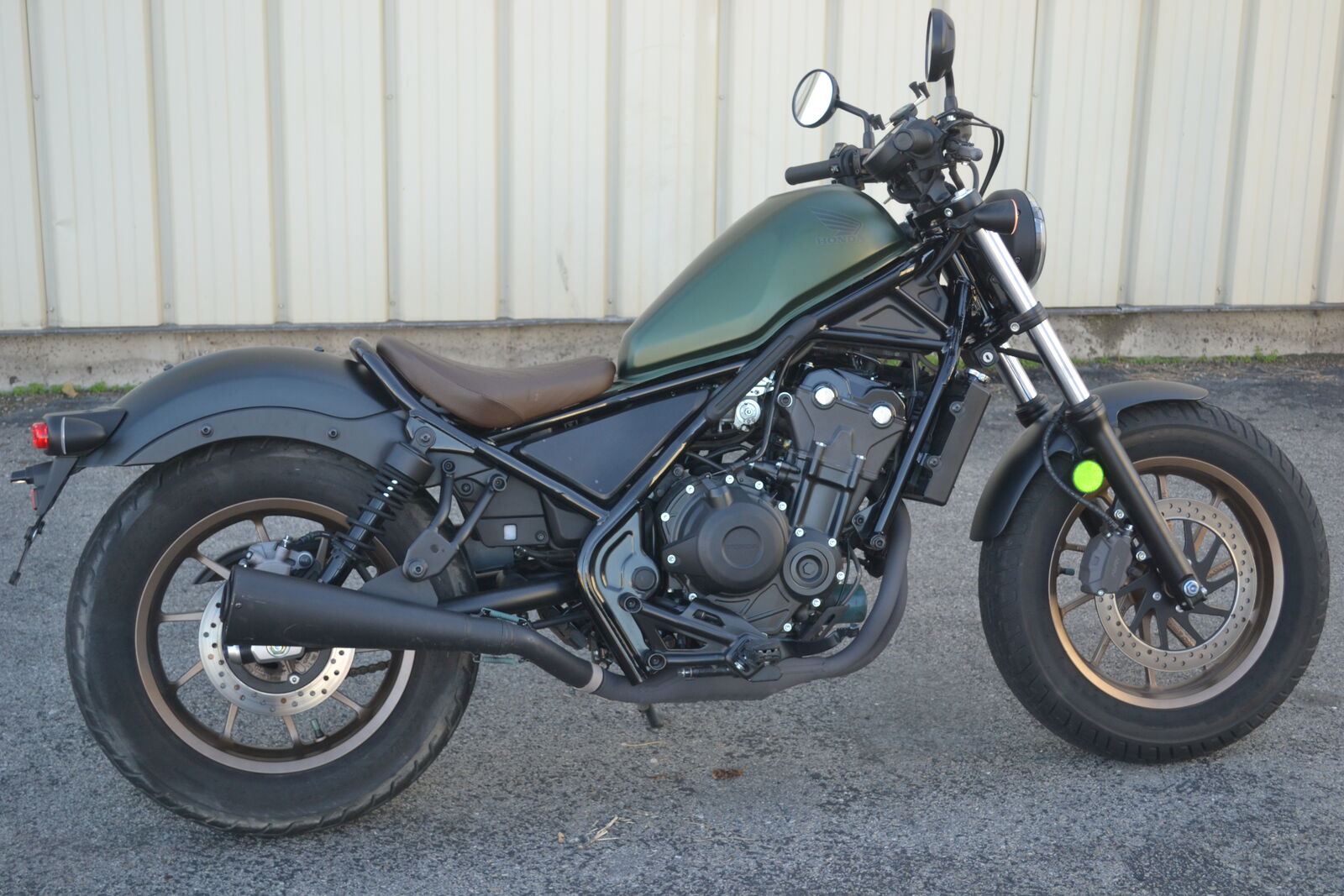 This Rebel 500 has an awesome look; matte green tank, upgraded exhaust, tan diamond stitched seat, and bronze wheels! It has ONLY 2,100 miles and a clean title. One of the best bikes to learn to ride on or a great upgrade from a 300cc motorcycle. Don't miss out on this head turner, come check it out today!