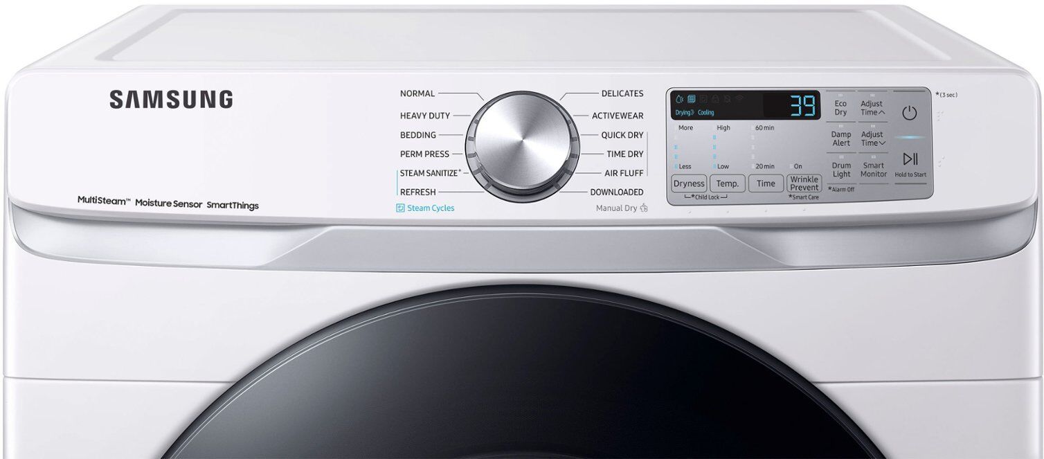 We have one Samsung DVE45B6300W 7.5 Cu. Ft. Smart ELECTRIC Dryer with Steam 1598764 #96988 available, This unit has been lightly used and comes out box along with manual, This unit has a few large dents and scratches from previous use. We have inspected and tested this unit to make sure that it is in working condition.
