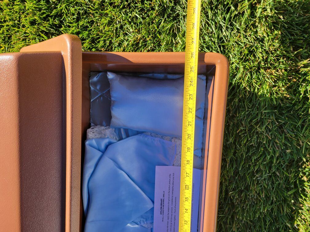 VenmoMedium size pet casket 26 1/2" x 14 1/4". 50% off. Brand new asking $60 obo. This was bought for $120.