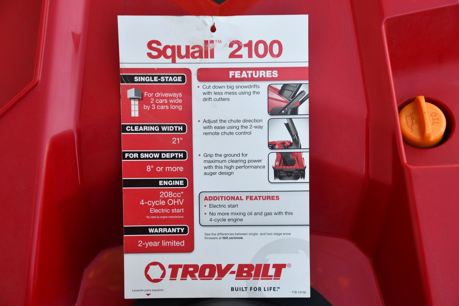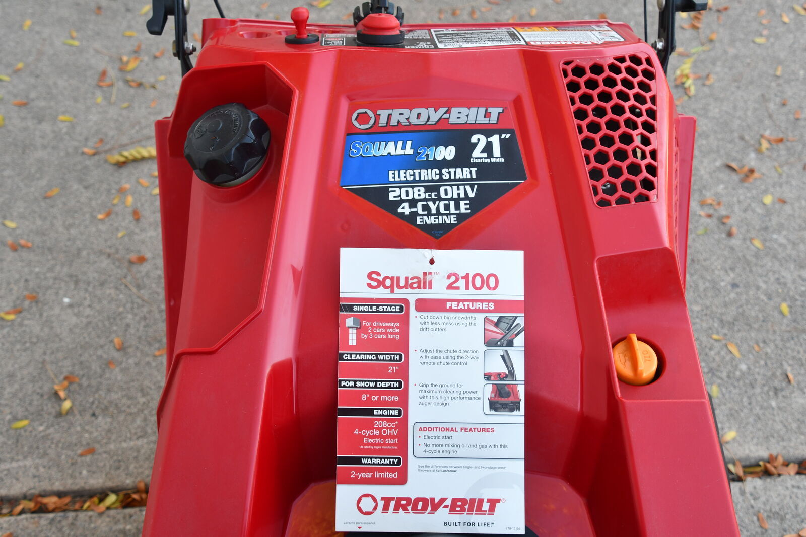 NEW Troy-Bilt Squall 2100 21" Electric Start Snow Blower. 208 cc OHV 4-Cycle Engine. Cash only in Plain City. We don't have Venmo.