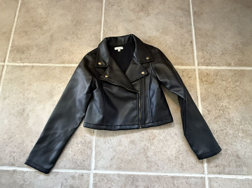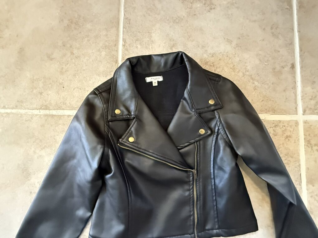 Tahari girl fake leather jacket size 10 black