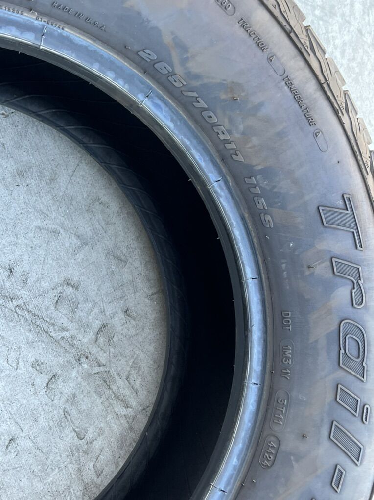 265/70R17 -4Bfgoodrich all season tires in perfect condition with tons of tread Less than 1000 k miles on them