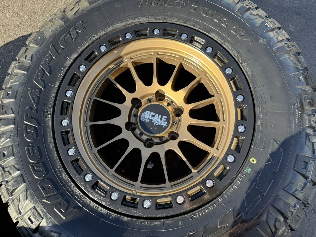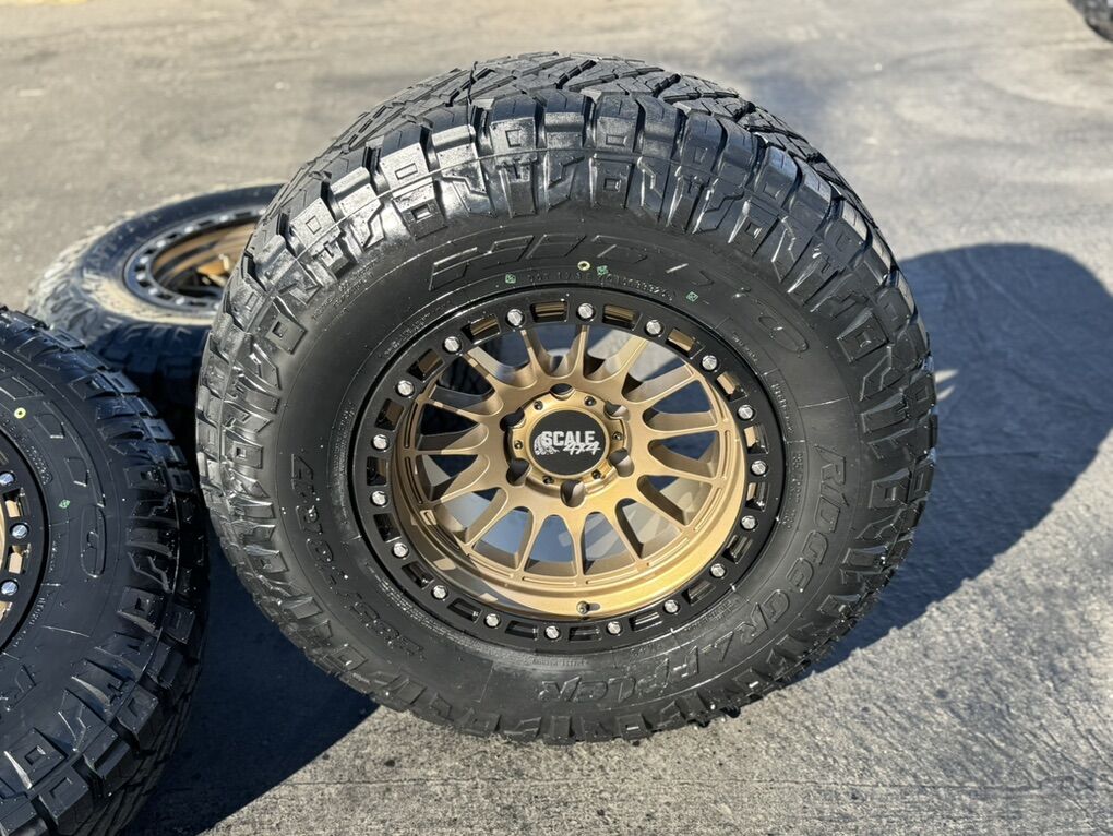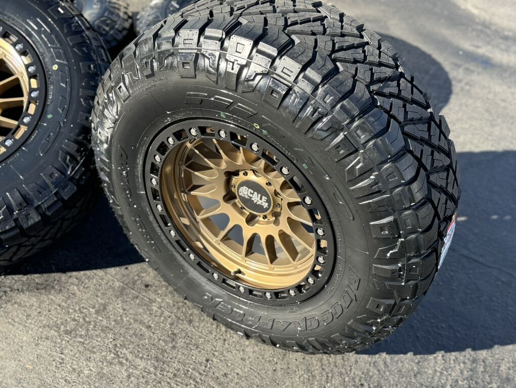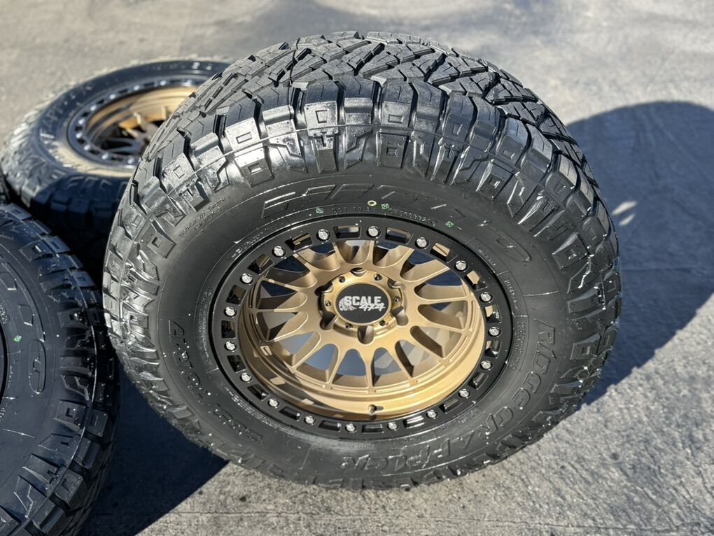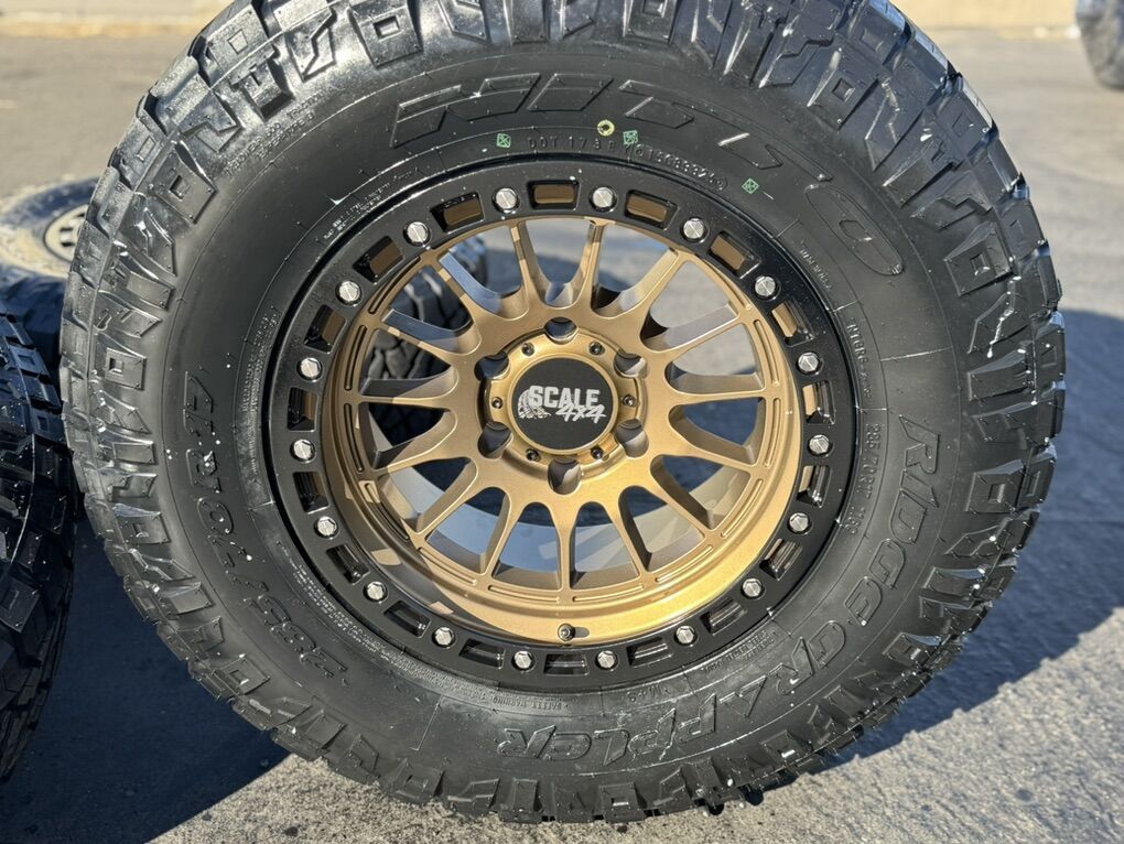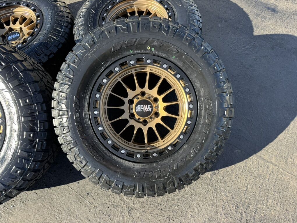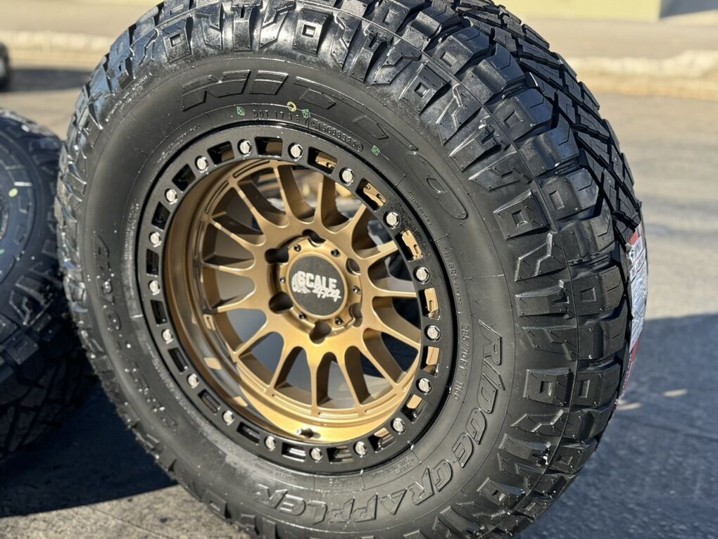 ApplePayBrand new package! 17x9 -24et offset Scale Off-Road wheels. Bronze finish Mounted and balanced on new 285/70r17 Nitto Ridge Grapplers. 6x5.5 bolt pattern (6x139.7). These fit Chevrolet Silverado 1500 GMC Sierra yukon tahoe Nissan Titan and Toyota Tacoma and FJ Cruiser