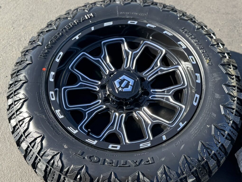 ApplePayBrand new package! 20x10 TIS 560BM wheels -19et offset. Mounted and balanced on a new set of LT275/65r20 Patriot RT tires load E 80 psi. 34” tall. 8x6.5 (8x165.1) bolt pattern. These fit Dodge Ram 2500 3500 Cummins, PRE 2011 Chevrolet Silverado GMC Sierra Duramax, and PRE 98 Ford F250 F350 Superduty trucks. Huge savings! Call or txt 435-760-1194