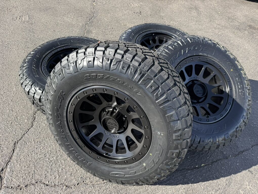 285/70r17 Nitto Ridge Grapplers mounted and balanced on 17x9 00et offset Lock Off-Road Yosemite wheels. 6x135 bolt pattern. These fit 2004 and newer Ford F-150 and expedition. Huge savings. Call or txt 435-760-1194