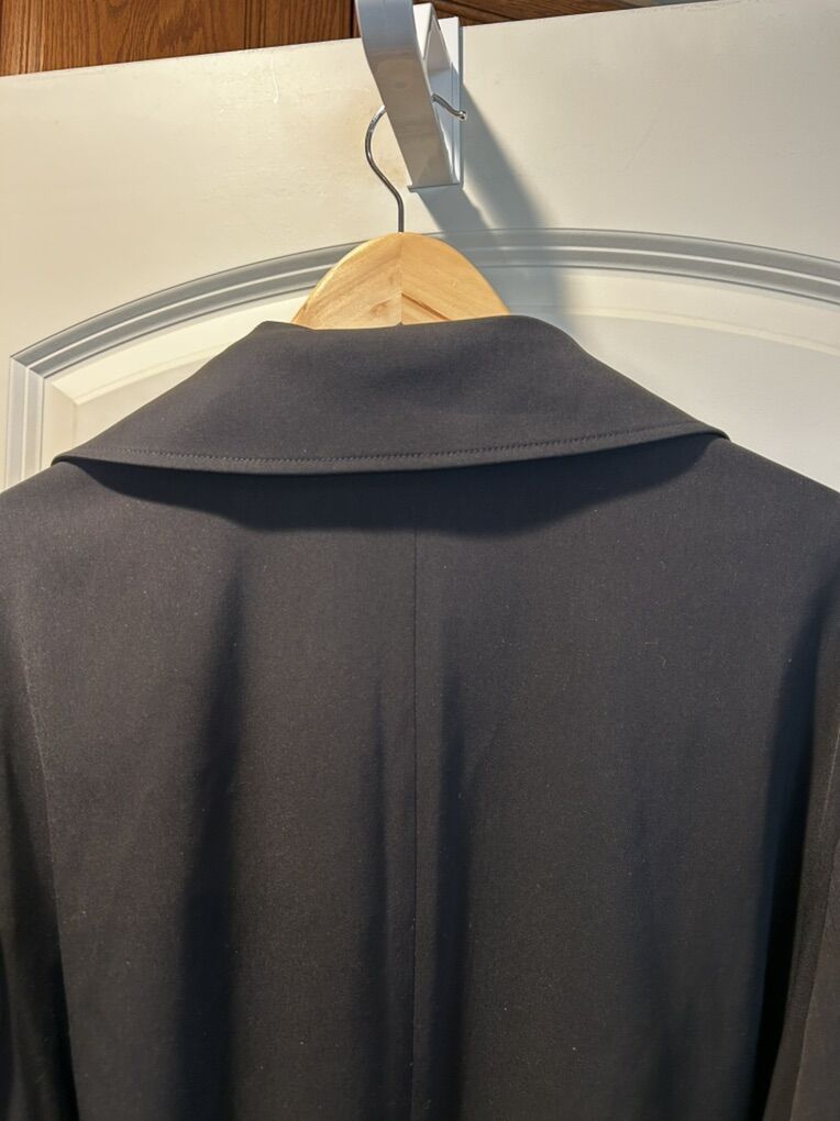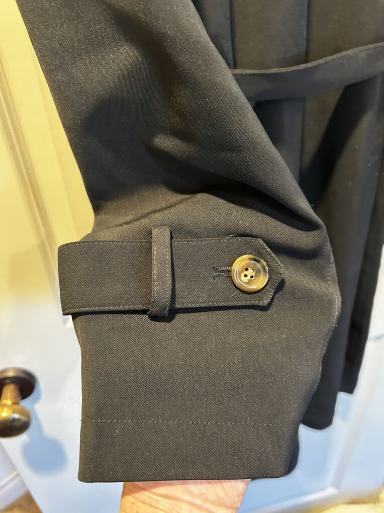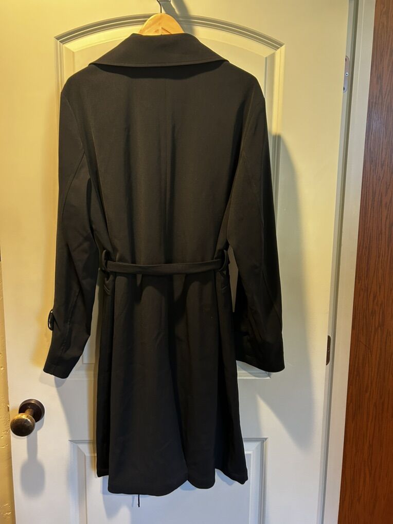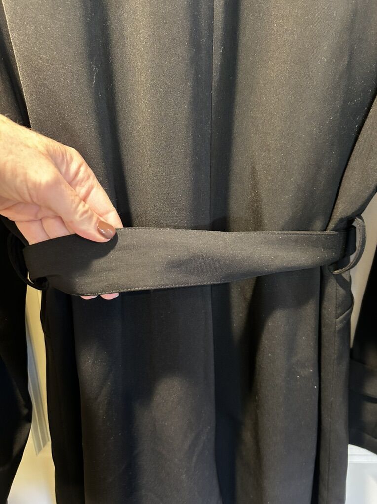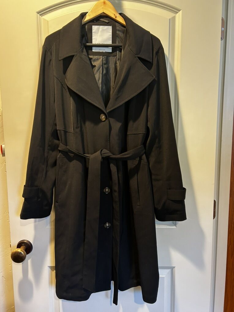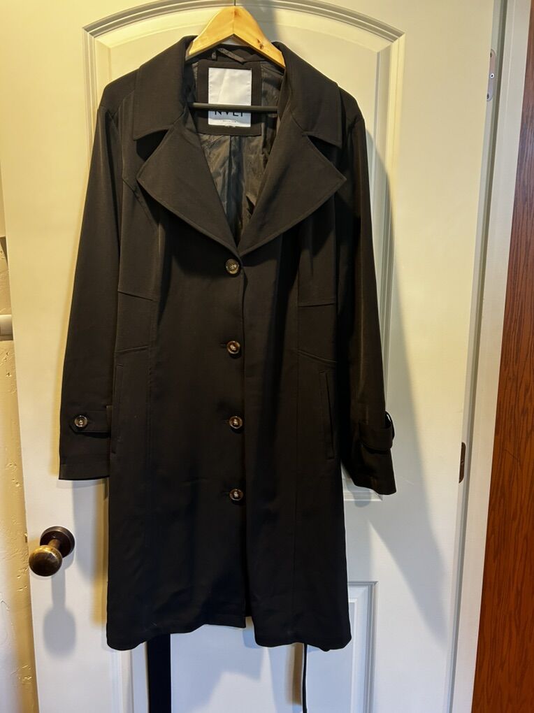 VenmoNVLT black belted trenchcoat in women’s size large extra large. In excellent like new condition. I did cut the size tag off since it bothered my neck. This is a sleek, wardrobe, staple. Create a beautiful hourglass silhouette with belt. Clean smoke free. Cash or Venmo. Pick up from Alpine.