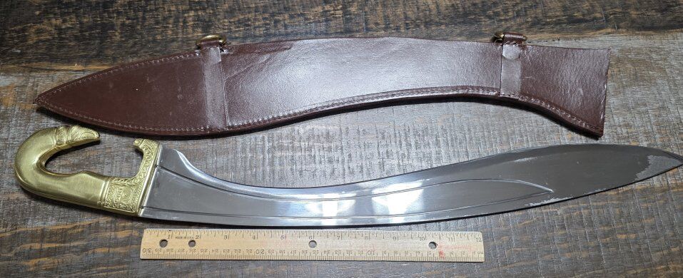 VenmoWindlass Falcata by Museum Replicas Limited. 25.25" overall and 20.125" blade, 2lbs 10oz, 3/16" thick, 1065 high carbon steel. sword is like new. It has a couple sticky spots on it(just to clarify, I wiped most of it off, I did not want to scrap it, just in case it scratched it.) Must be 18 to purchase. Cash only, text only and FIRM on price. Thanks!