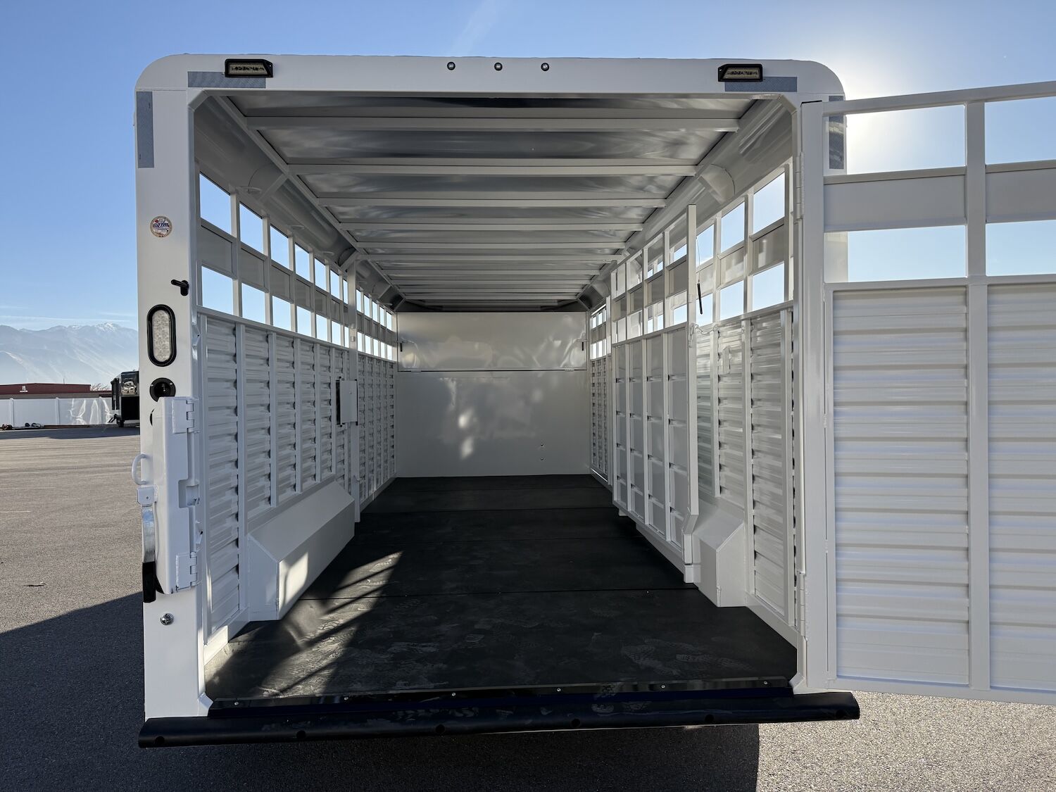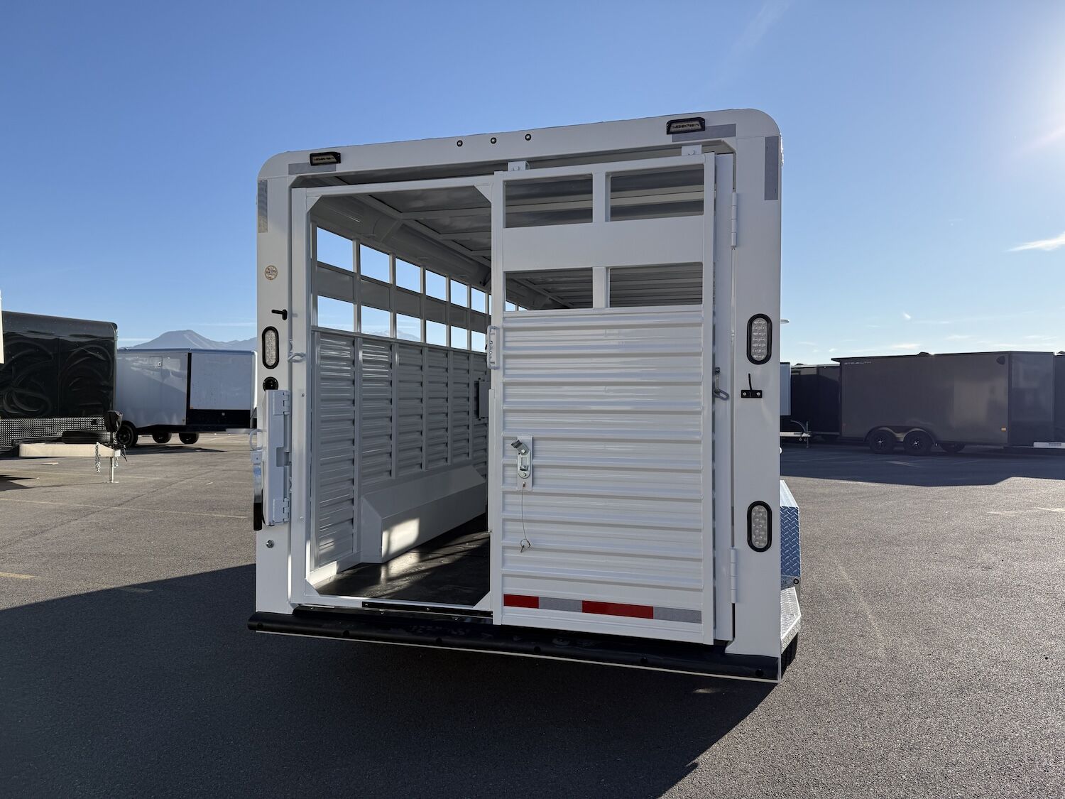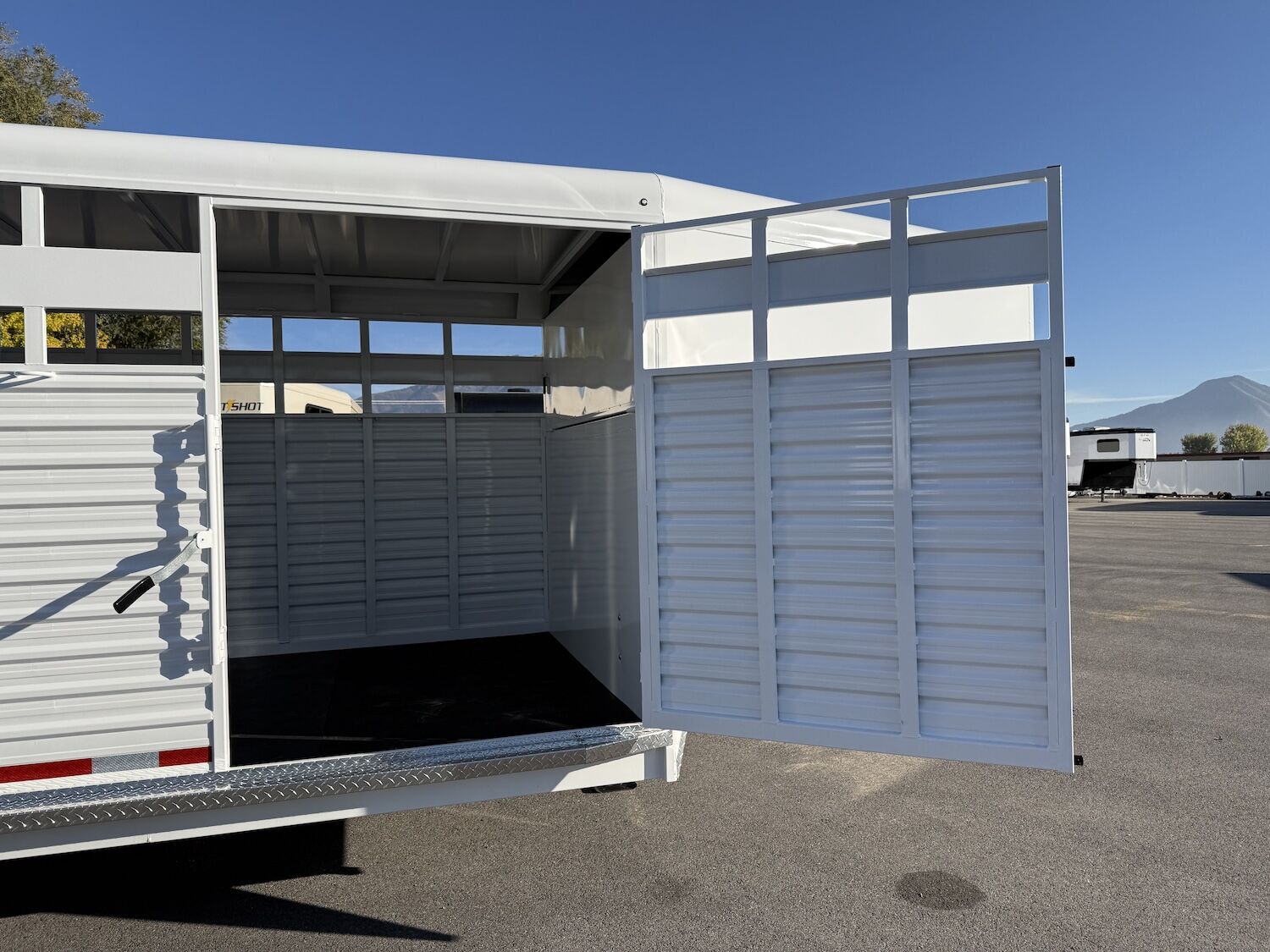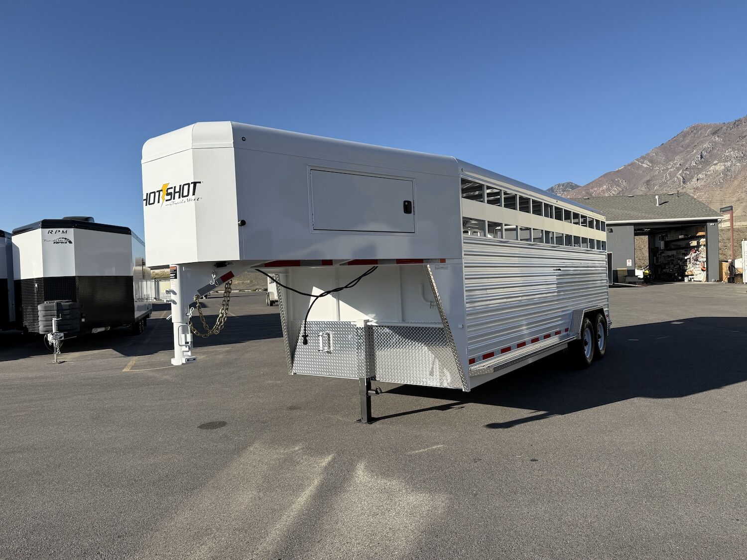 The Trails West Hot Shot gooseneck trailer is a 7’6″ wide x 7’ tall livestock trailer. The design of this trailer has electro-galvanized seamless corrugated steel sides for strength and durability. This extra-safe stock trailer is light weight and built for safety. This is a great pulling trailer because of the aerodynamic design of the front, cutting the wind while still providing enough space in the gooseneck area for an optional tack package. Check out this great priced trailer that is built for real stock men and women.