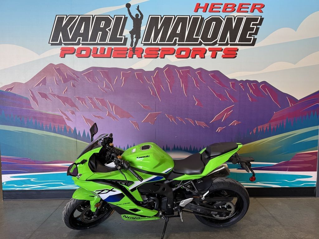 2026 Kawasaki Ninja® ZX™-4RR ABS AWAKEN YOUR SUPERSPORT Features may include: SUPERSPORT POWER CLASS-LEADING POWER Powered by a high-performance, in-line 4-cylinder 399cc engine with advanced racing-inspired technology, the Ninja® ZX™-4R supersport is a force to be reckoned with both on and off the track. HANDLING LEGENDARY HANDLING The Ninja® ZX™-4R supersport offers the best of both worlds with light maneuverability when riding in the city, and high-level supersport handling when sport or track riding. Key chassis dimensions were inspired by the Kawasaki Racing Team’s WorldSBK Ninja® ZX™-10RR race bike. ELECTRONICS ADVANCED RIDER SUPPORT SYSTEMS Next-level electronics offer the ability to harness the power and performance of the Ninja® ZX™-4R supersport in a way that delivers confidence over a wide range of riding situations and rider preferences. ERGONOMICS CONTROL & COMFORT A naturally aggressive yet slightly relaxed riding position lets you take greater advantage of the Ninja® ZX™-4R supersport bike's nimble handling while also providing a balance of wind protection and aerodynamics. STYLING STANDOUT DESIGN The Ninja® ZX™-4R supersport motorcycle stands out with aggressive Ninja® styling that exudes confidence and explosive power. ADDITIONAL: High-grade front fork with adjustable spring preload High-grade Showa BFRC lite rear shock Kawasaki Quick Shifter (KQS) (Dual-Direction)