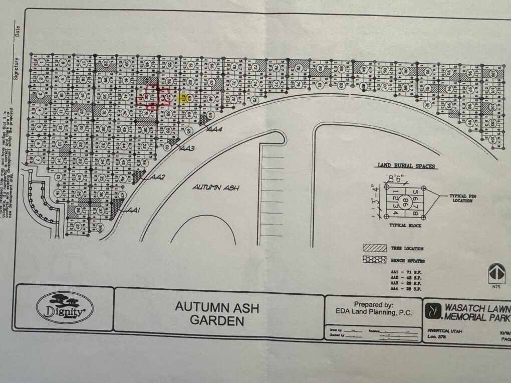 Location: Autumn Ash Lot 63, Spaces 2 & 3 Price: $2,750 per plot Transfer Fee: $590 (paid by buyer) Double-Stack Option: Available; additional fee equal to half the current lot rate payable to the cemetery if buyer chooses Endowment Care: Included (perpetual maintenance covered by cemetery) Authorized Agent: Notarized authorization from owners available Documentation: Original purchase documents and Certificate of Interment Rights available