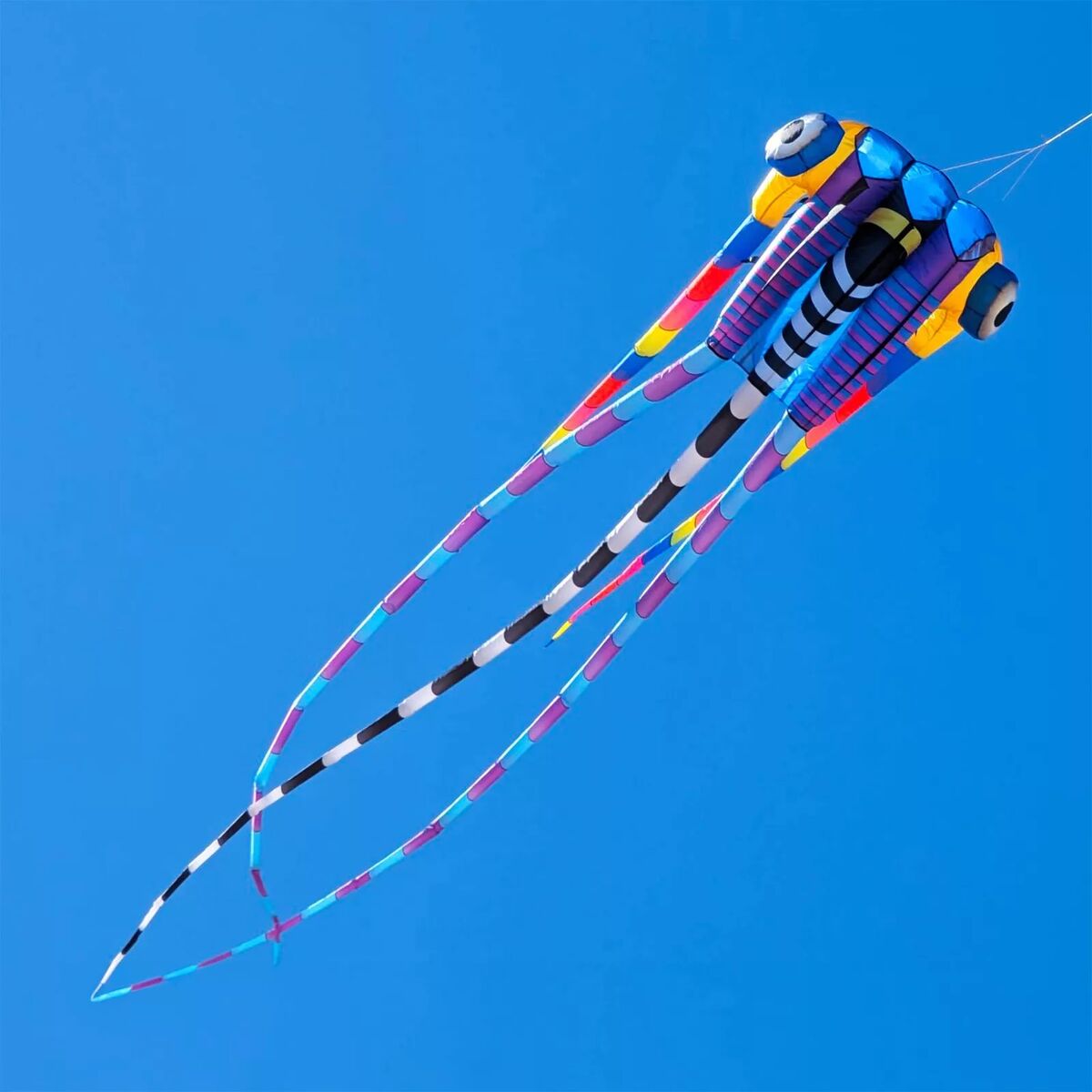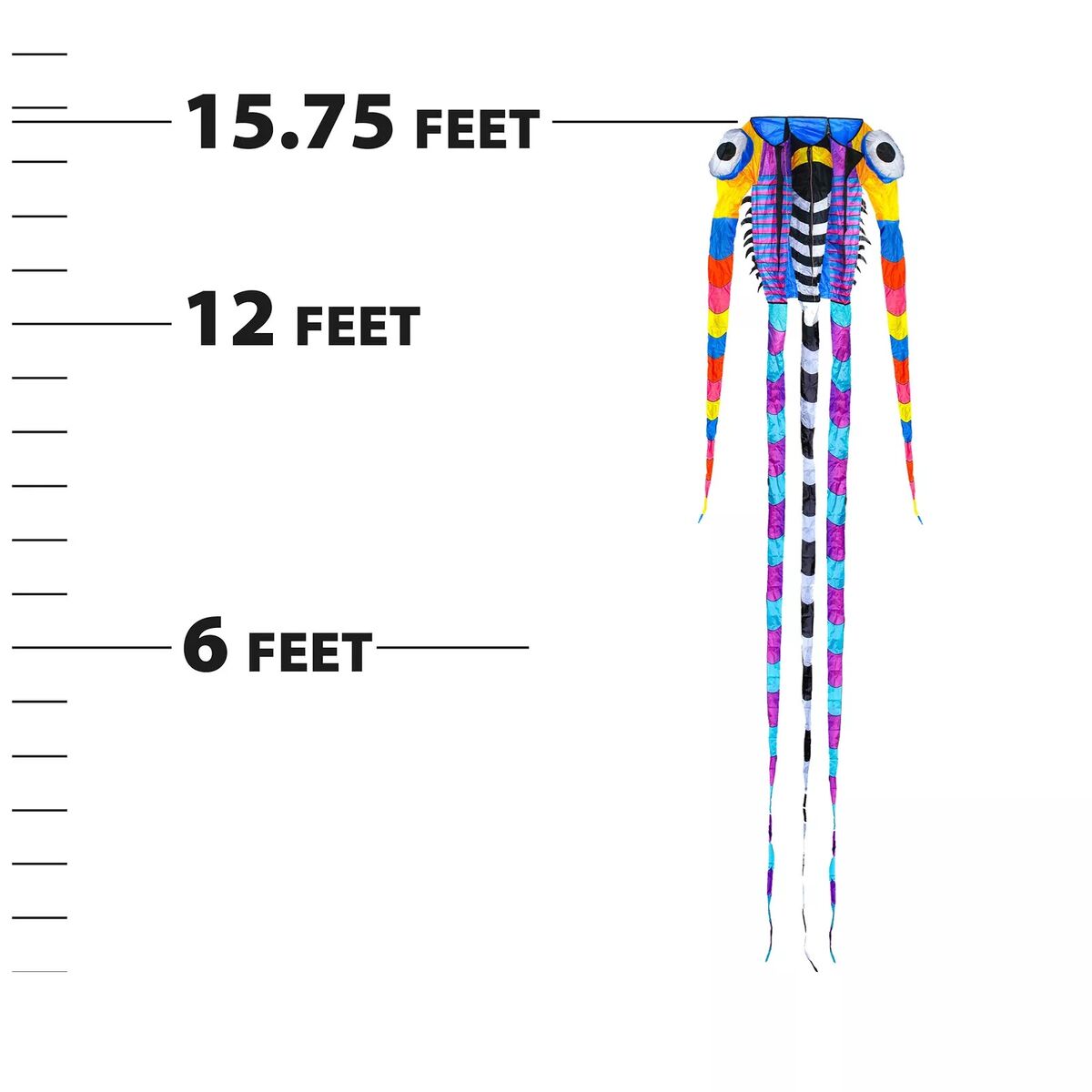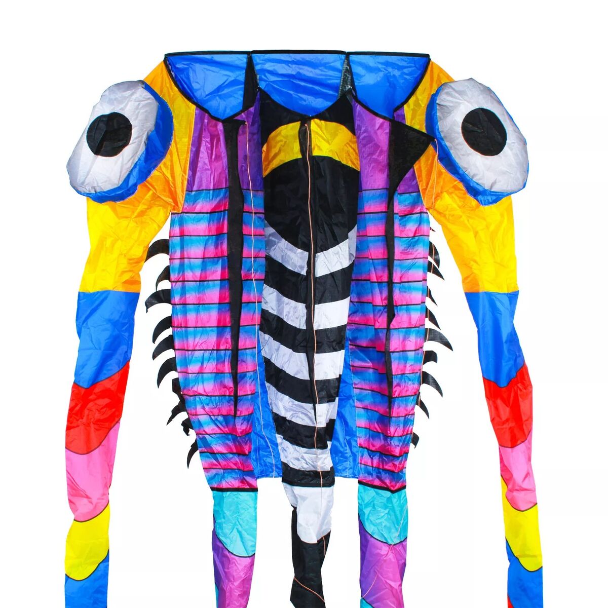 This Giant Trilobite Airfoil Nylon 3-D Kite is designed to resemble a trilobite, an extinct marine arthropod. This vibrant and colorful kite has a unique and intricate shape, with detailed markings to mimic the appearance of a trilobite. It is made from durable nylon material (KiteTex®) and designed for stable flight.