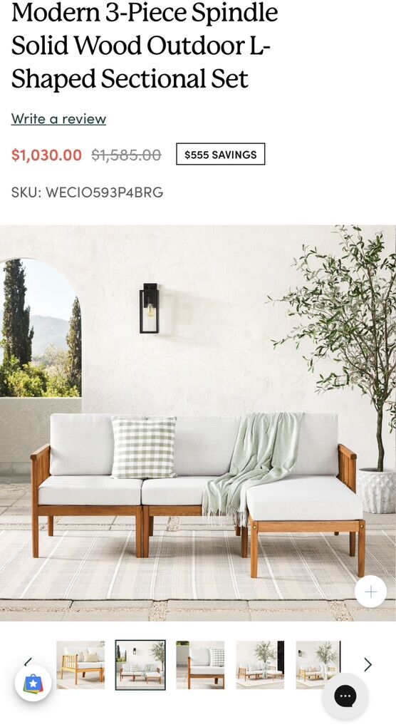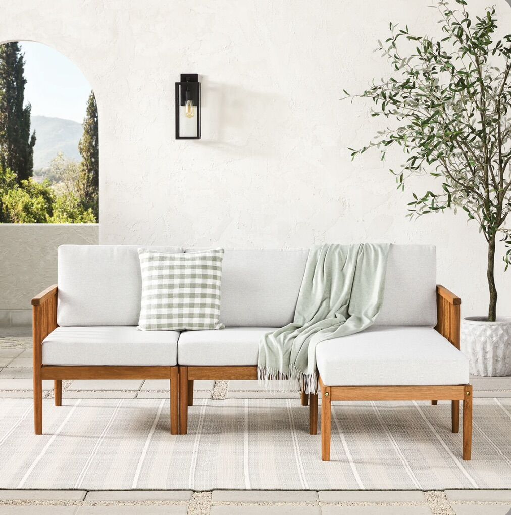Modern Outdoor Spindle Style Right L-Shape Sectional Set.