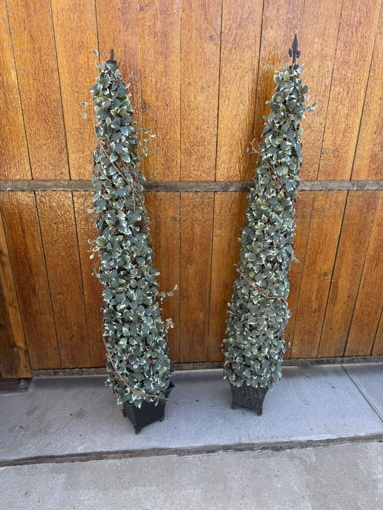 Total of 2 fake topiary trees with ivy and red berries 5 foot tall. Price for set!