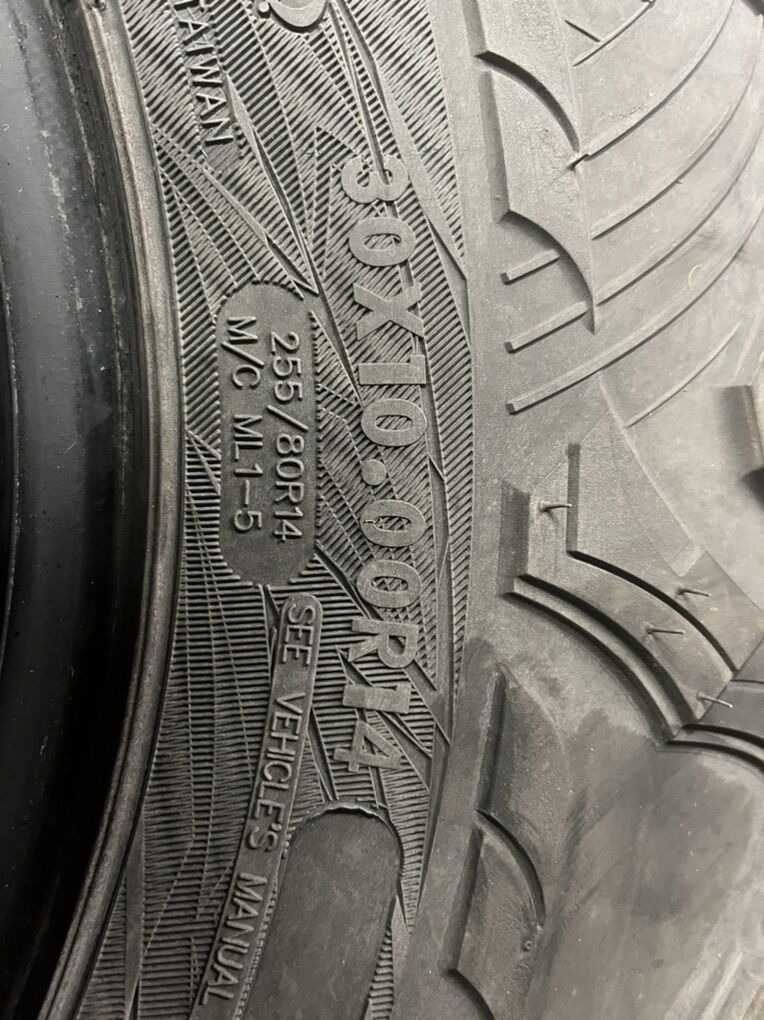 Takeoffs in pretty decent shape. About 5/8 to 3/4 tread left. No flats or damage.