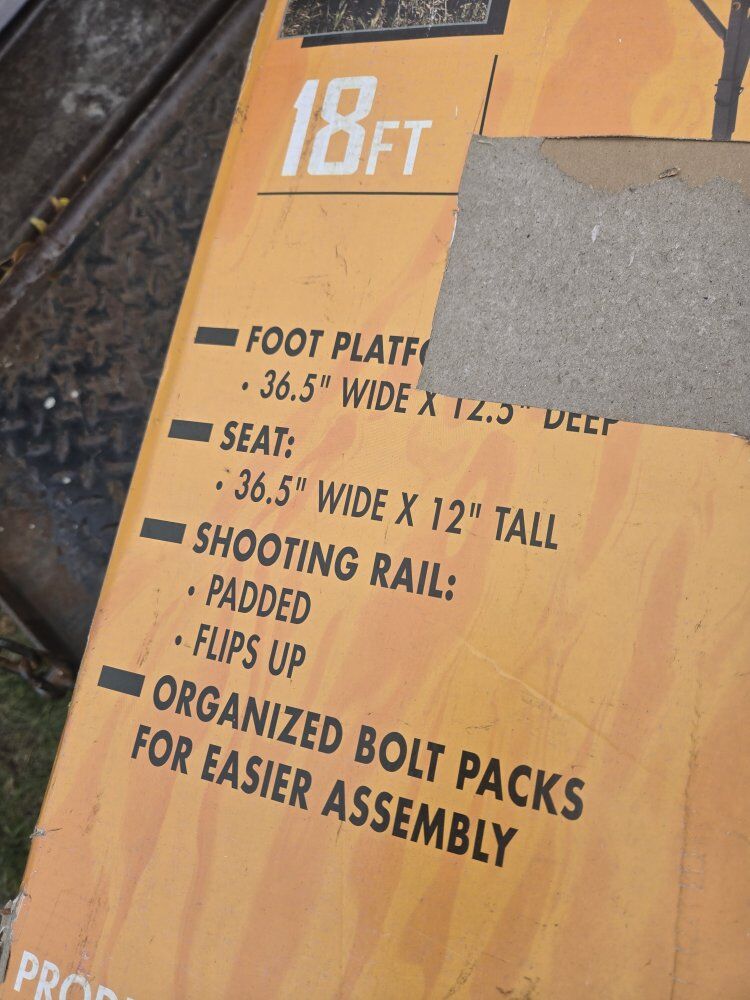 Impressive Height: 18' tall ladder stand keeps you out of sight from game. Spacious Platform: 36.5" wide x 12.5" deep platform provides ample room. Comfortable Seating: 36.5" wide x 12" tall flex-Tek seats ensure comfort and durability. Two-Man Capacity: Designed for two people with a 500 lb weight rating. Sturdy Construction: Made from powder-coated steel for long-lasting durability. Enhanced Stability: Features an adjustable support bar for added stability. Convenient Shooting Rail: Padded shooting rail flips up for easy use with firearms. Lightweight Design: Stand weight of 53 lbs for easier transport and setup.