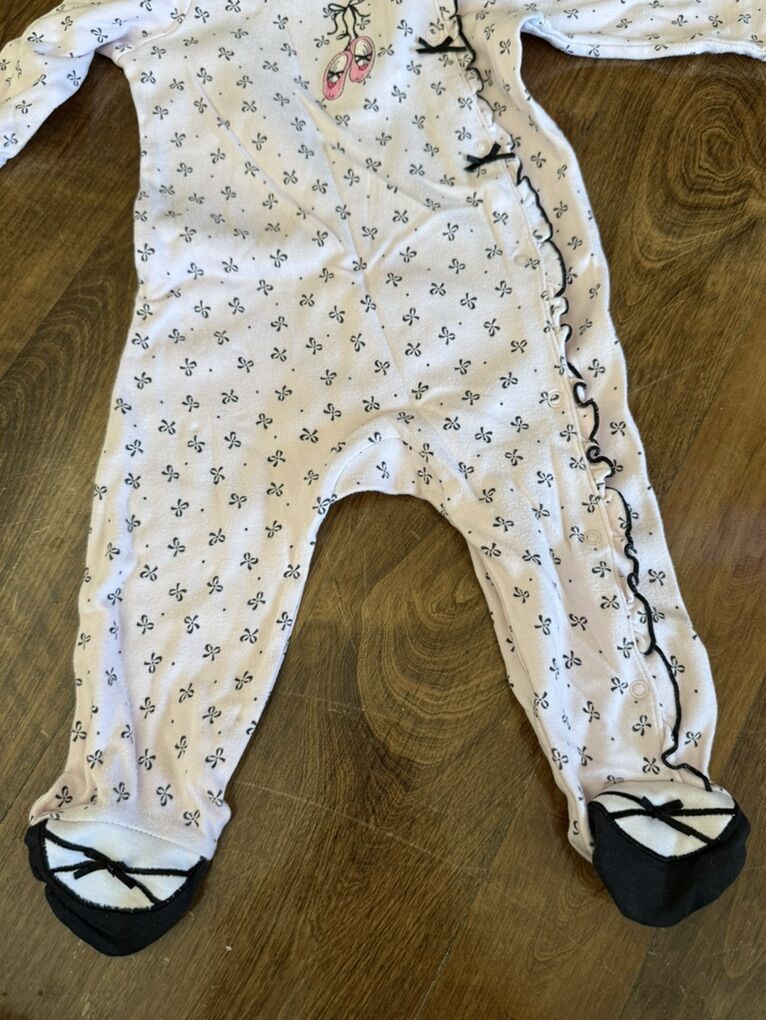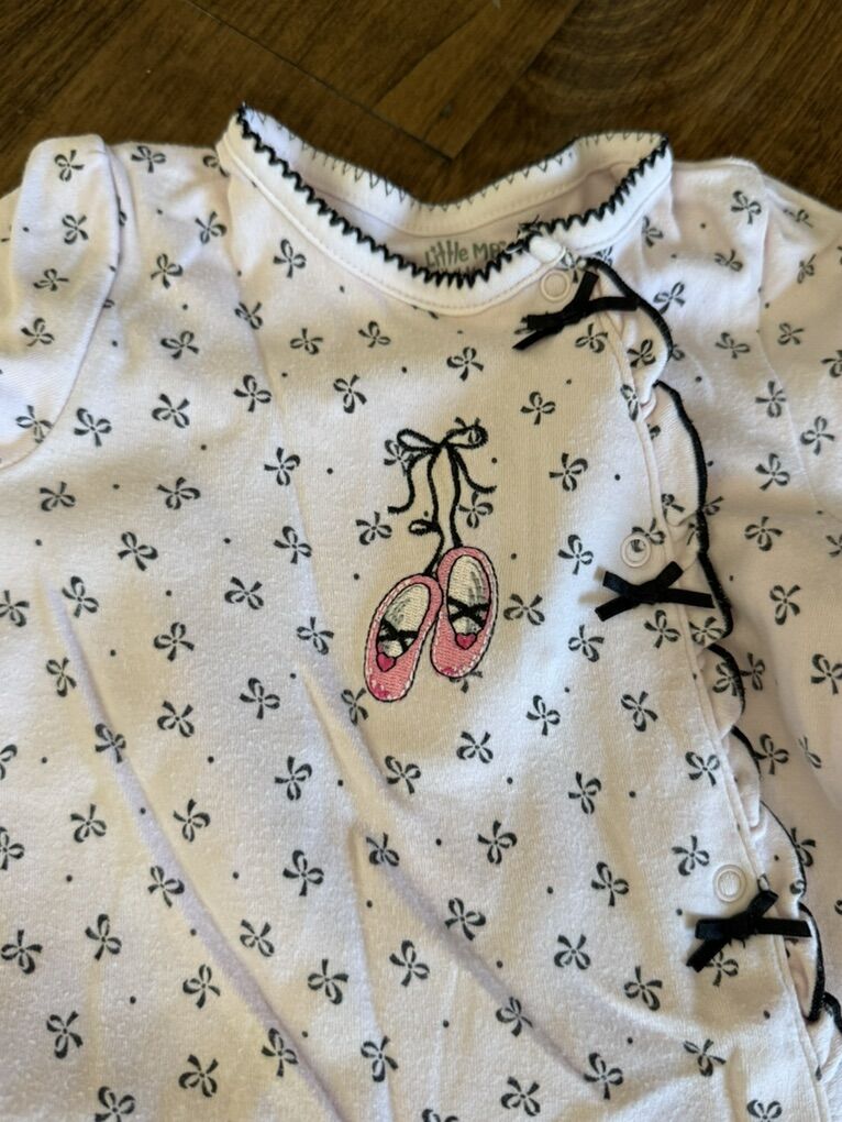Little me brand baby outfit pink with black bows 9 month