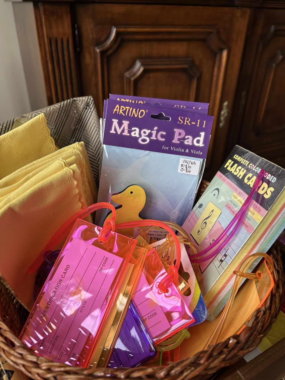 Polishing/cleaning cloths Bow grip sleeves String sets & singles Flashcards & learning tools for beginners and young students Nametags for instrument cases