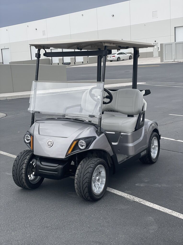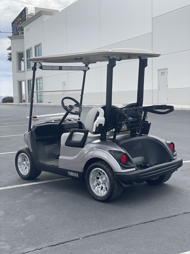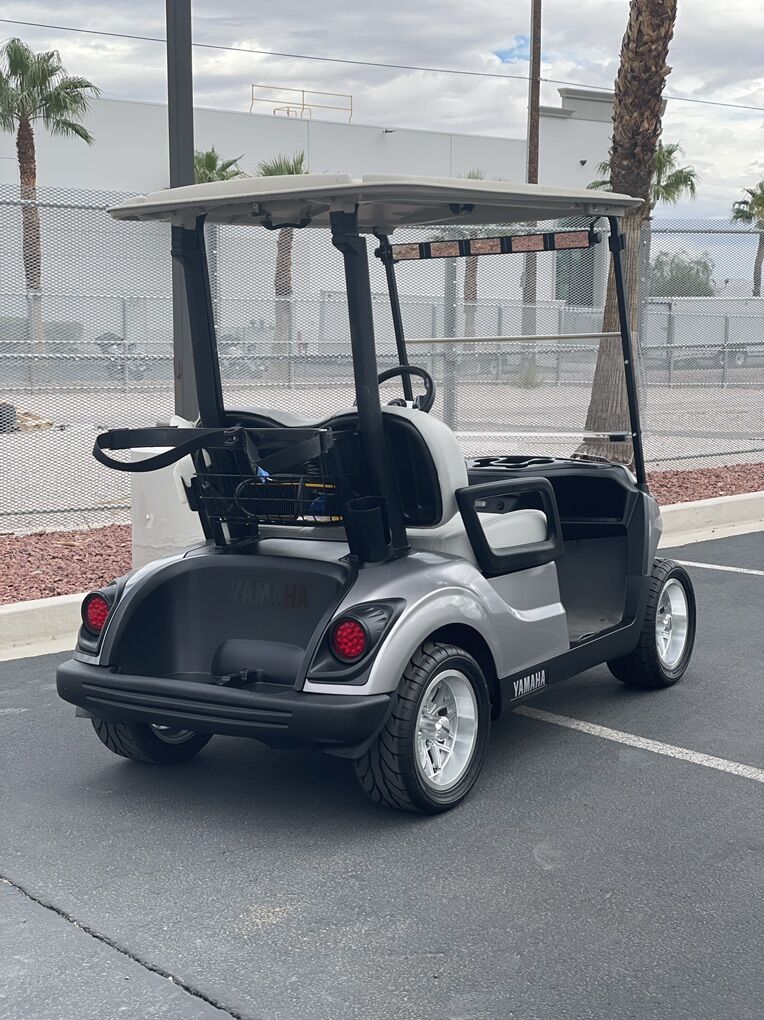 2019 electric Yamaha Drive2 with lithium battery, on board charger, battery gauge, upholstered seats, painted body panels, headlights, taillights, custom wheels and tires, serviced